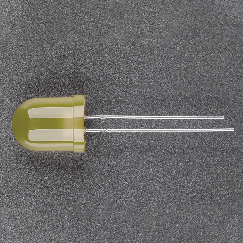 Поставка под заказ от 5000 шт. Выводной круглый светодиод, d=10 мм, желтая линза. Цвет свечения желтый (580-595 нм). Угол излучения 40-60°. Сила света Iv=250-450 мкд, If=20 мА. VF=1.8-2.4 В. Рекомендуемый постоянный рабочий ток <16-17 мА.