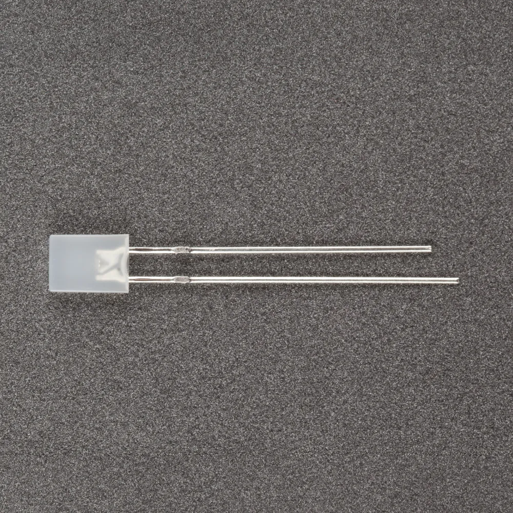 Поставка под заказ от 5000 шт. Выводной прямоугольный светодиод, 2×5×7 мм, белая диффузная линза. Цвет свечения белый. Угол излучения 130°. Сила света Iv=100-250 мкд при If=20 мА. VF=2.9-3.5 В. Рекомендуемый постоянный рабочий ток <16-17 мА.