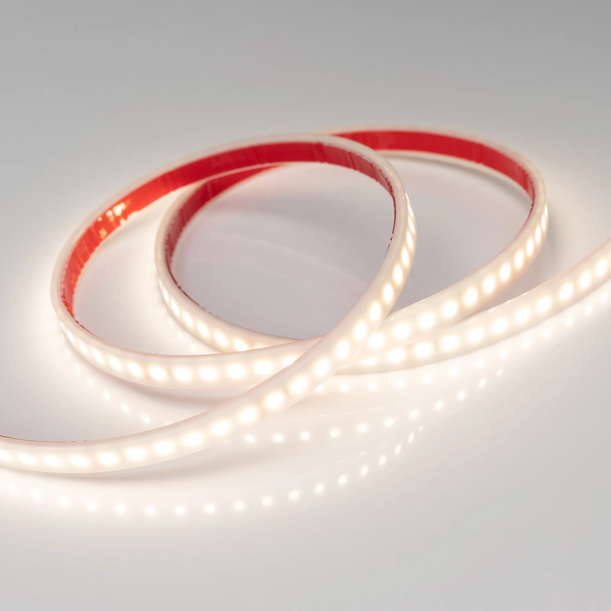 Герметичная IP66 (плата в матовой силикон.трубке) гибкая лента LUX, светодиоды 2X smd 3528, 120шт/м (600шт на 5м), белая плата 8мм, скотч 3М. Цвет БЕЛЫЙ ДНЕВНОЙ 3800-4200K.Питание 24В, мощность 9,6 Вт/м (48 Вт на 5м), угол 120°. Размеры 5000х11х5мм. Мин.отрезок 50мм (6 LED). Цена за 1м.