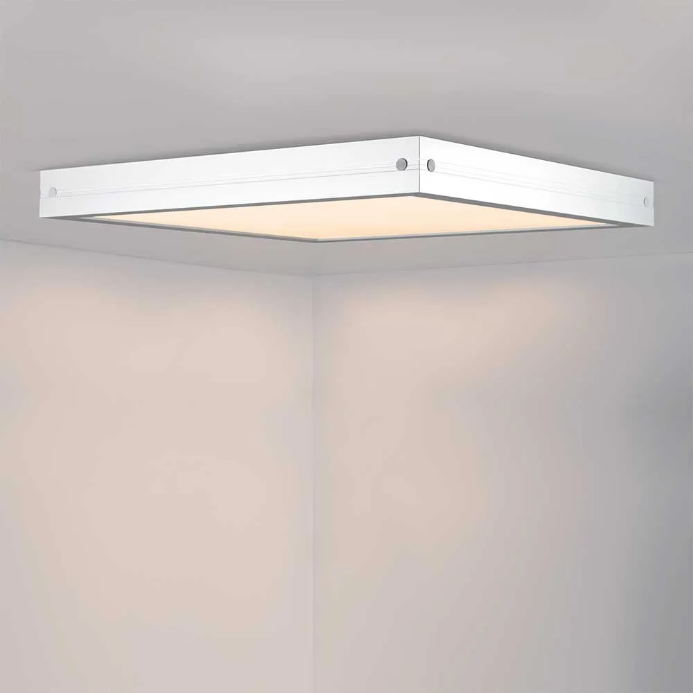 Светодиодная панель с торцевой заcветкой. Мощность 40 Вт, св. поток 3600 лм, 90 лм/Вт, дневной 4000 K, CRI>80, угол 110°, напряжение питания 230 В. Белый квадратный корпус из алюминия, экран PS, LGP PMMA, степень защиты IP40. Размер (Д×Ш×В) 595×595×9 мм. Монтаж с креплением. Драйвер 39 В, 950 мА, пульсация <1%.