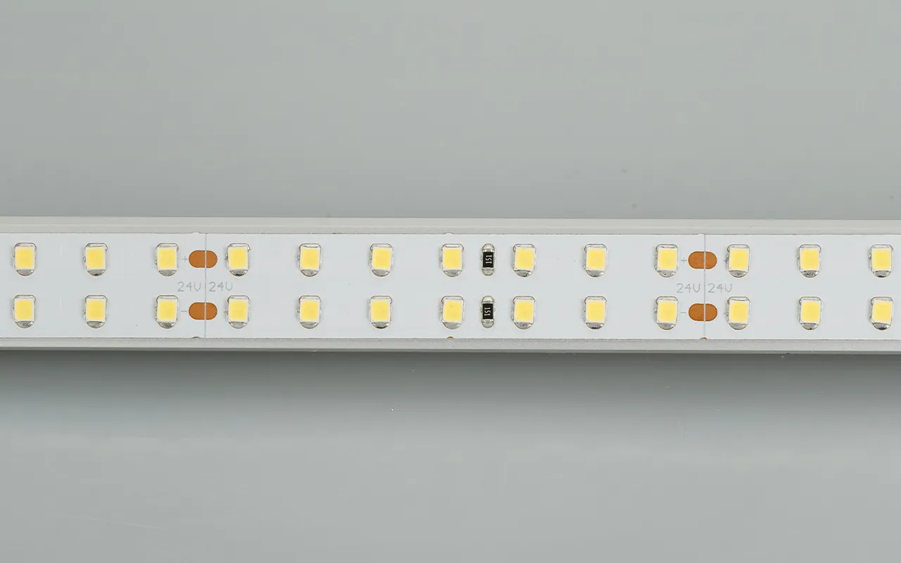 Гибкая лента LUX, светодиоды smd 2835, 196 шт/м (980шт на 5м), белая плата 15 мм, скотч 3М. Цвет ТЕПЛЫЙ 2600-2800K. Питание 24V, мощность 20 Вт/м (100 Вт на 5м), угол 120°, цветопередача CRI 95..98. Размеры 5000х15x1.5мм. Мин.отрезок 71.43мм, 14 светодиодов. Цена за 1м.