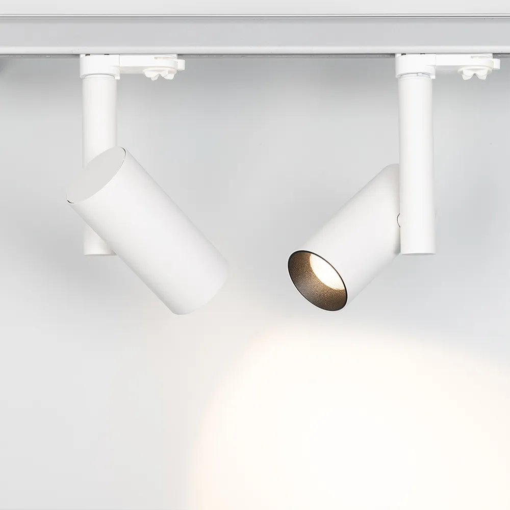 Трековый светильник 8Вт, белый круглый корпус, черная вставка, металл.