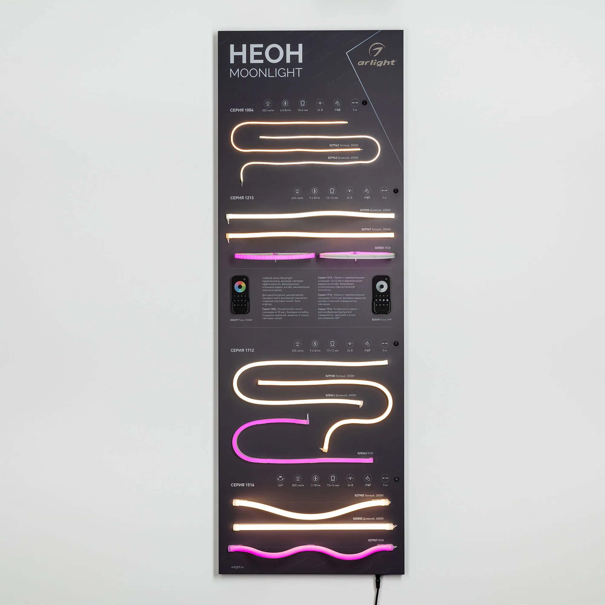 Наши специалисты знают все о продукции Arlight и с радостью помогут Вам выбрать комплектующие к товару "Стенд Гибкий Неон MOONLIGHT-1760x600mm (DB 3мм, пленка, подсветка) (Arlight, -)", или другие товары из раздела "Светодиодный декор".