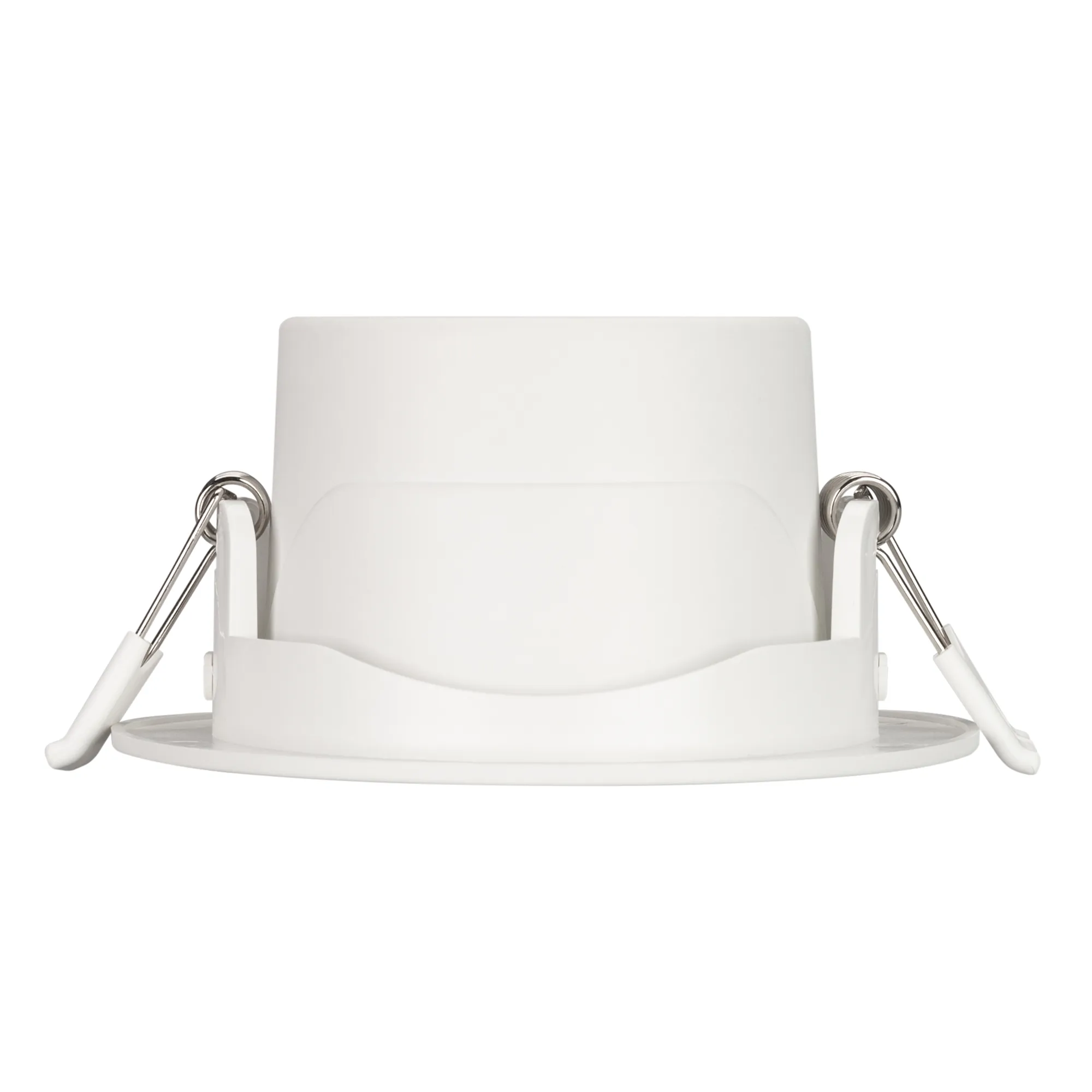Встраиваемый поворотный светильник "даунлайт". Мощность 10 Вт, св. поток 900 лм, 90 лм/Вт, теплый 3000 K, CRI>80, UGR<19, угол 36°, напряжение питания 230 В. Белый круглый корпус из теплопроводящего полиамида, степень защиты IP20, угол поворота оси 30°. Размер: диаметр 105 мм, высота 51.5 мм. Монтаж встраиваемый, установочное отверстие диаметр 83-95 мм. Пульсация <2%.