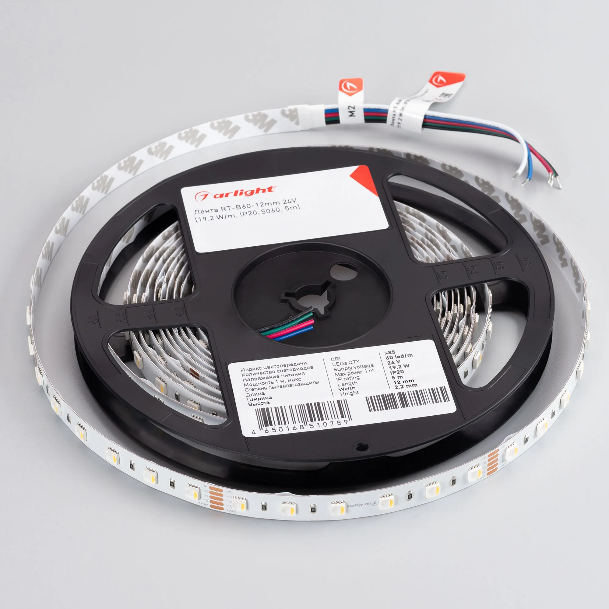 Лента светодиодная RT-B60-12mm 24V RGBW-Warm-4-in-1 (19.2 W/m, IP20, 5060, 5m) (Arlight, Открытый)