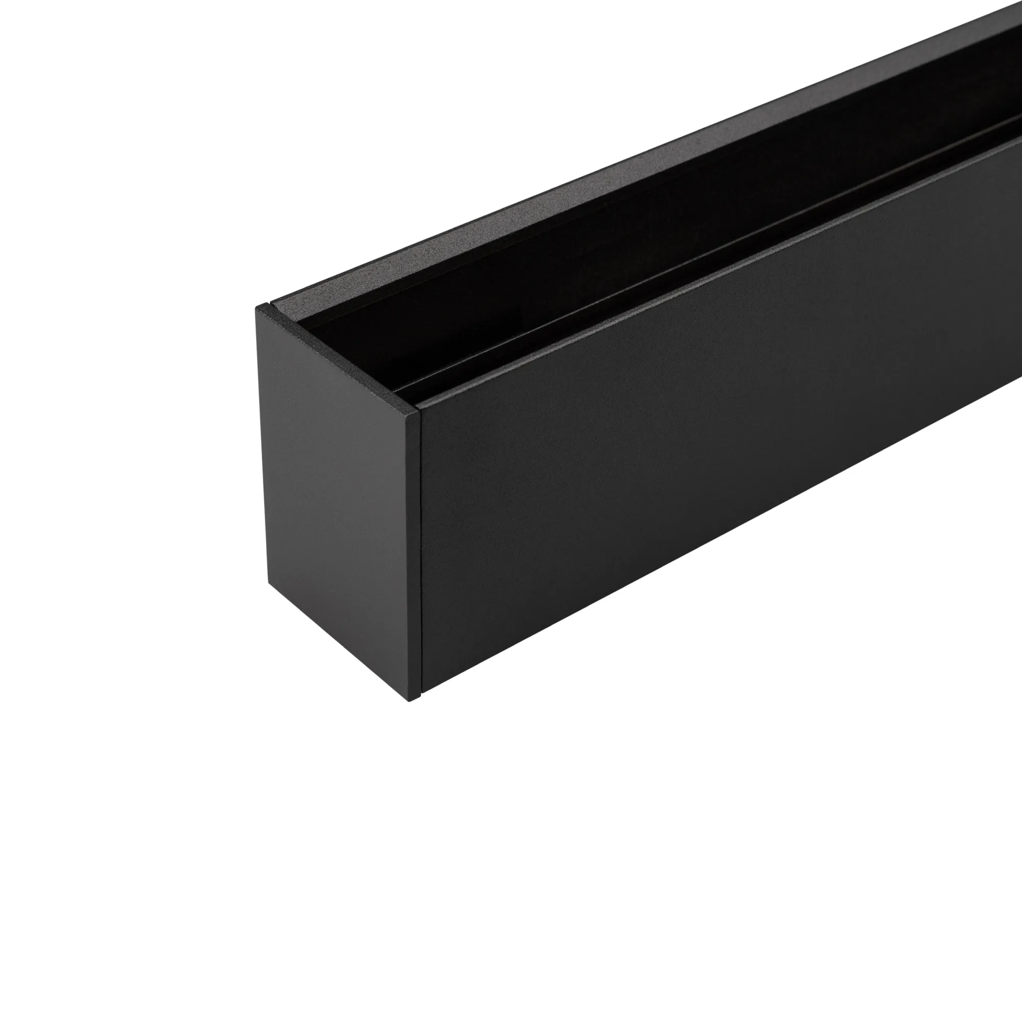 Подвесной, накладной, встраиваемый в нишу магнитный трек, длина 3000мм. DC24V. Материал алюминий, цвет черный. Две заглушки в комплекте. Размер ДxШxВ: 3000x45x63мм. Размер (с учетом заглушек) ДxШxВ: 3006x45x63мм. При встраиваемом монтаже установка в отверстие ДхШхВ 3007x46x63. Аксессуары для подвесного монтажа в комплект не входят.