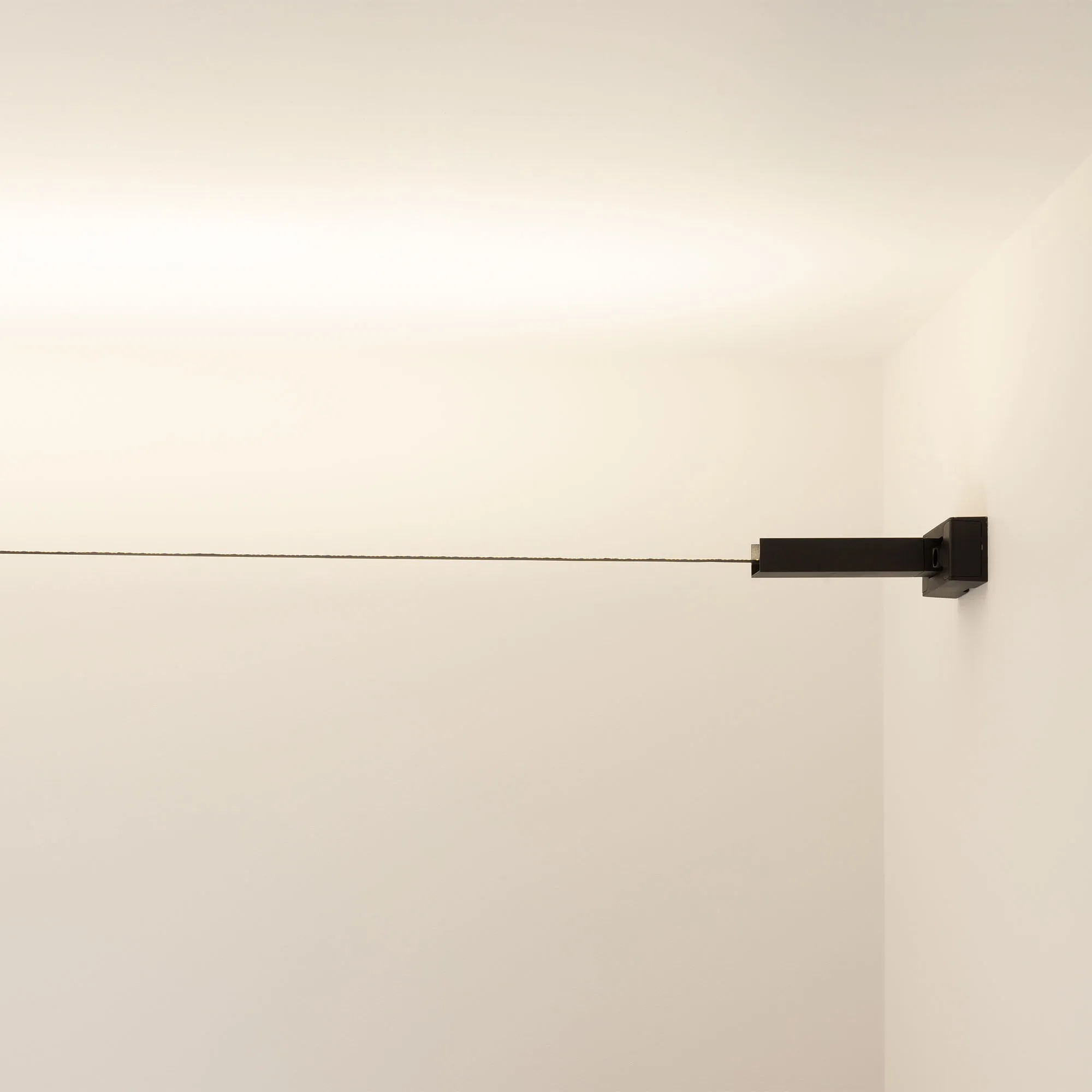 Лента-трос STINGRAY. Цвет - черный. В комплект входит: Открытая светодиодная лента RT-B30, гибкая полоса для ленты 5 м шириной 15 мм, 2 настенных крепления, аксессуары для фиксации и монтажа.