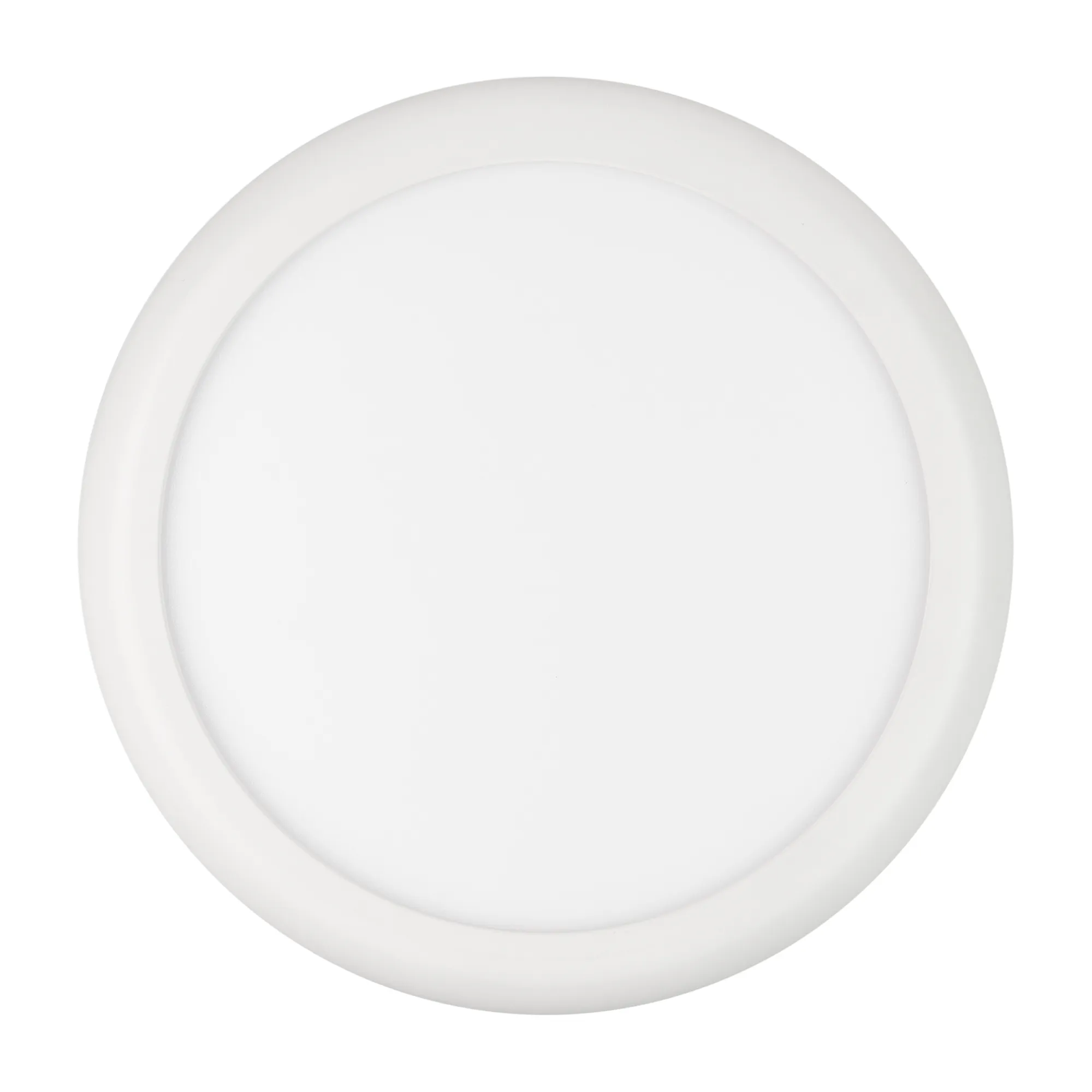 Накладной/встраиваемый светильник с изменяемой мощностью и цветовой температурой. Мощность 8-12 Вт, св. поток 600-900 лм, 75-90 лм/Вт, теплый 3000 K, дневной 4000K, белый 6000K, CRI>80, угол 120°, напряжение питания 230 В. Белый круглый корпус из пластика, экран поликарбонат, степень защиты IP44. Размер: диаметр 180 мм, высота 20,5 мм. Монтаж накладной/встраиваемый, установочное отверстие: диаметр 80-160 мм (регулируемое). Драйвер встроенный, пульсация <1%. Комплект крепежа для встраиваемого монтажа поставляется отдельно.