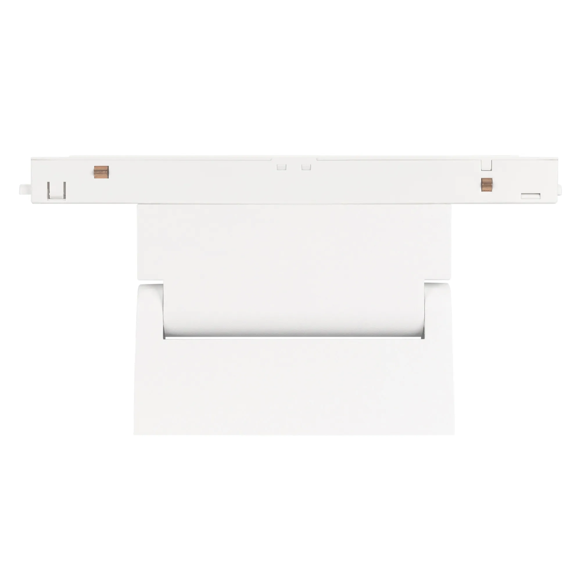 Светильник для магнитных треков MAG-ORIENT шириной 26 мм. Мощность 6 Вт, св. поток 250 лм, 42 лм/Вт, дневной 4000 K, CRI>90, угол 30°, напряжение питания 48 В. Белый прямоугольный корпус из металл, экран поликарбонат, степень защиты IP20. Размер: длина 204 мм, ширина 23 мм, высота 104 мм. Монтаж на трек MAG-ORIENT. Пульсация <1%.