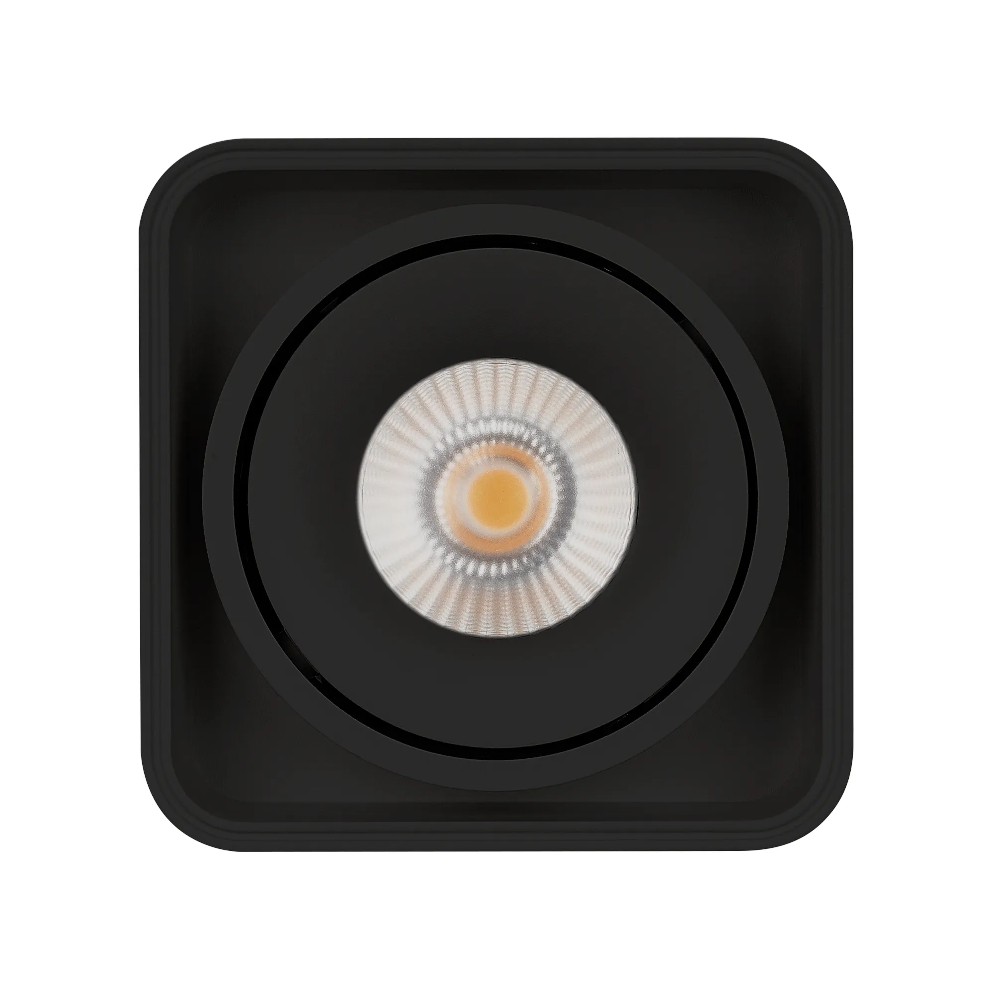 Накладной интерьерный светильник. Мощность 8 Вт, св. поток 760 лм, 98 лм/Вт, теплый 3000 K, CRI>90, угол 45°, регулируемое направление луча 30°, напряжение питания 230 В. Черный квадратный корпус из алюминия, степень защиты IP20. Размер: длина 100 мм, ширина 100 мм, высота 100 мм. Монтаж накладной. Драйвер 24-42 В, 200 мА, пульсация <1%.