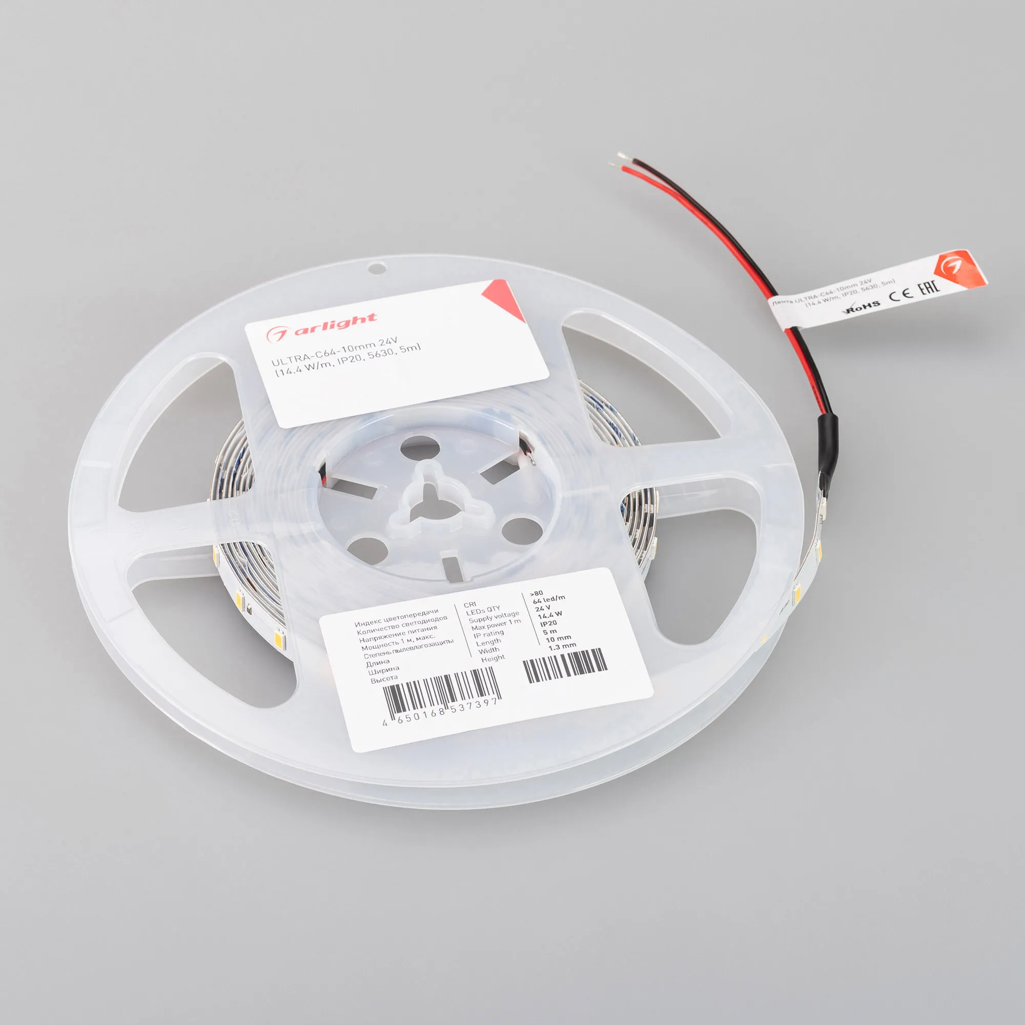 Лента светодиодная ULTRA-C64-10mm 24V White6000 (14.4 W/m, IP20, 5630, 5m) (Arlight, высок.эфф.160 лм/Вт)