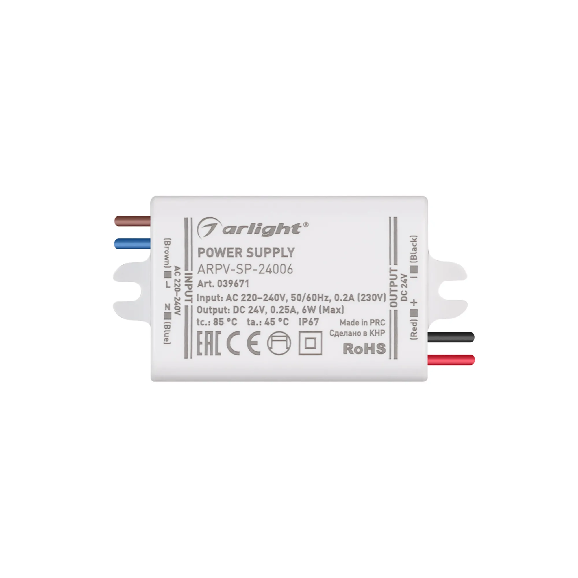 Блок питания ARPV-SP-24006 (24V, 0.25A, 6W) (Arlight, IP67 Пластик, 5 лет)