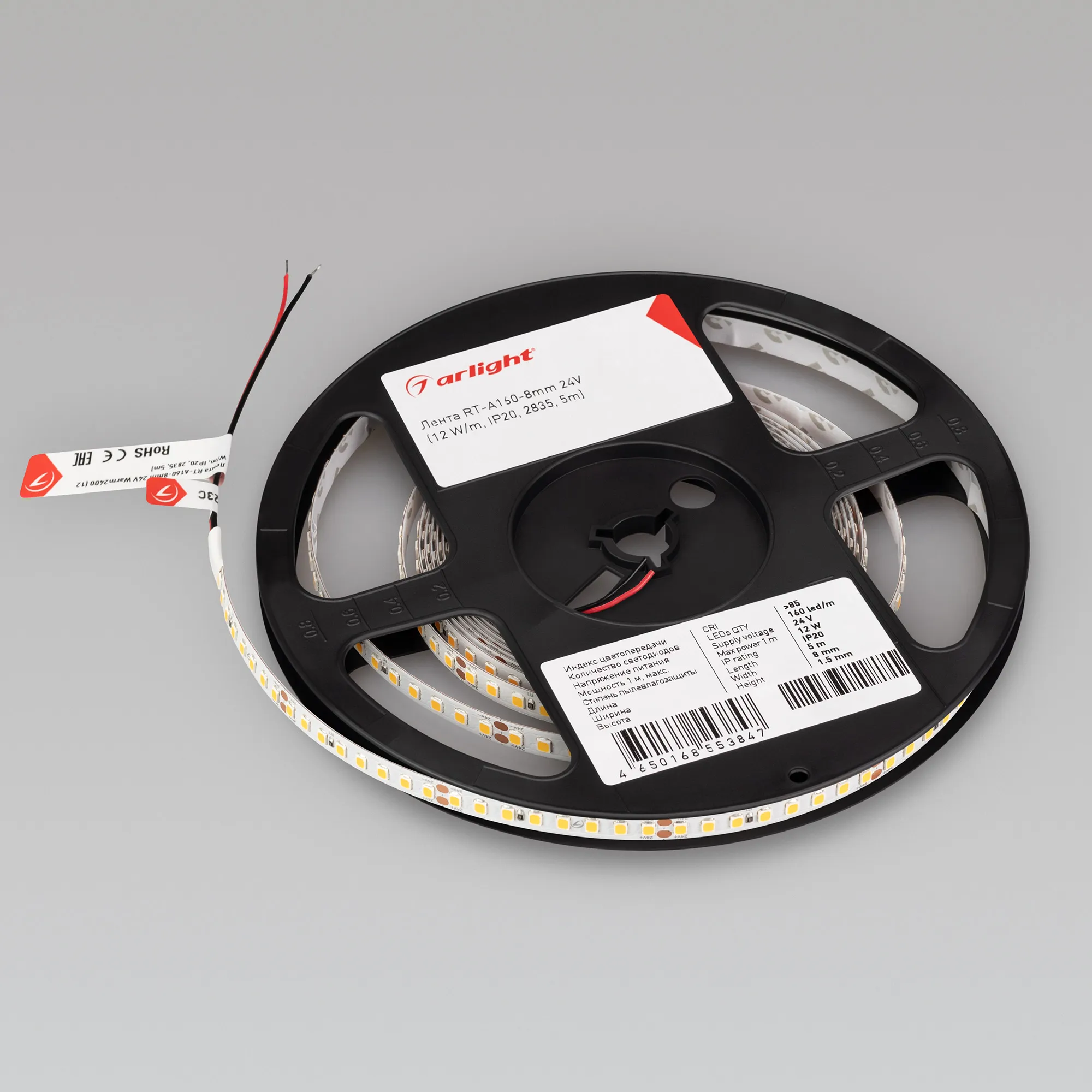 Лента светодиодная RT-A160-8mm 24V Warm2400 (12 W/m, IP20, 2835, 5m) (Arlight, высок.эфф.150 лм/Вт)