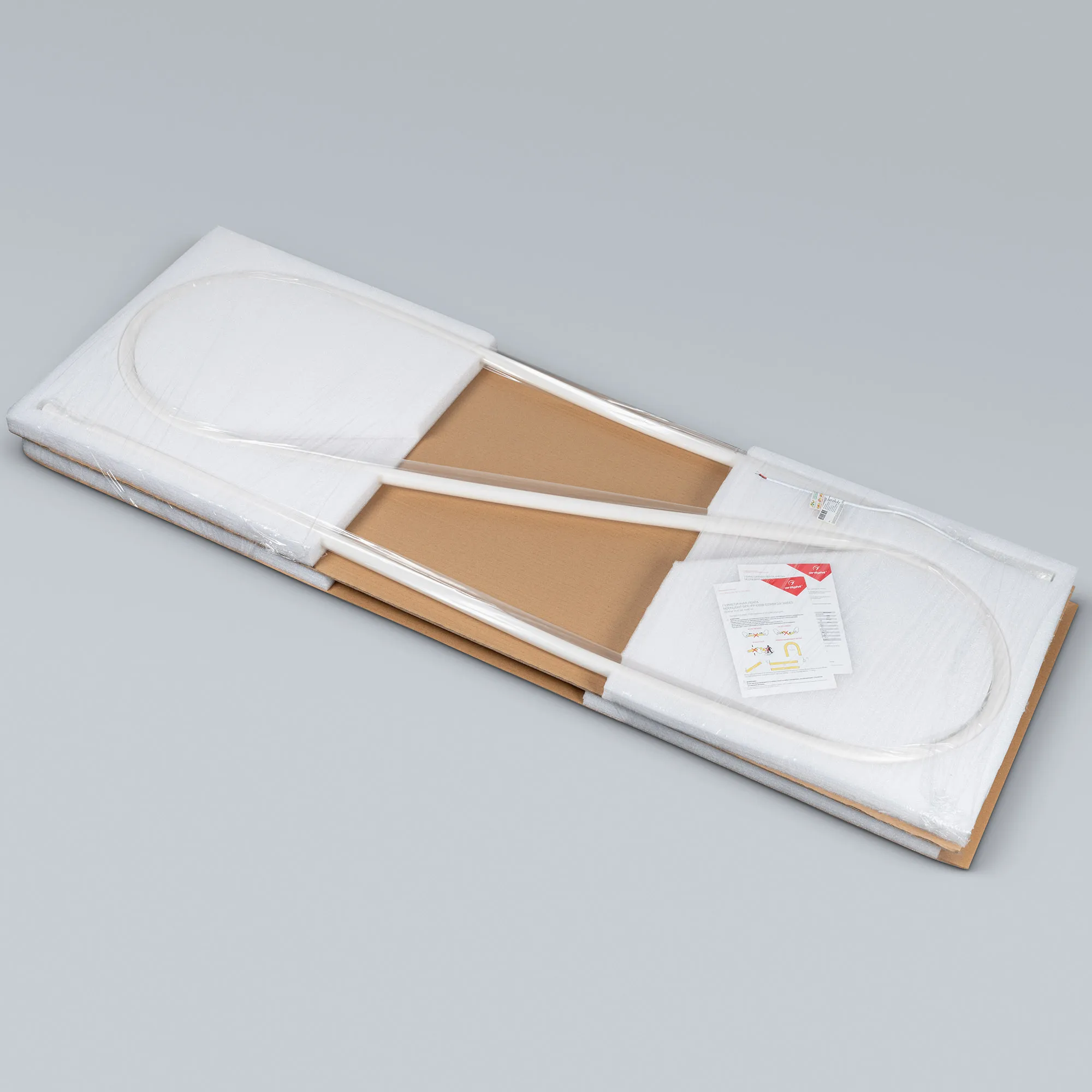 Гибкая герметичная лента (неон серии MOONLIGHT), сечение 25×25 мм. Светодиоды CSP 1088 шт/м. Цвет свечения ДНЕВНОЙ БЕЛЫЙ (4000 К), индекс цветопередачи CRI>90, световой поток 1140 лм/м, угол излучения 360°. Мощность 20 Вт/м, питание 24 В. Класс пылевлагозащиты IP65. Размеры 5000×25×25 мм. Резка не предусмотрена. Форма изгиба ленты фиксируется. Изгиб согласно метки на корпусе, минимальный радиус изгиба 150 мм. Кабель питания длиной 500 мм, вывод с одной стороны вдоль линии сечения неона. Катушка 5 м. Цена за 1 м. В виду особенности конструкции ленты, упаковка имеет размеры 1600x980x260 мм. Гарантия 3 года.