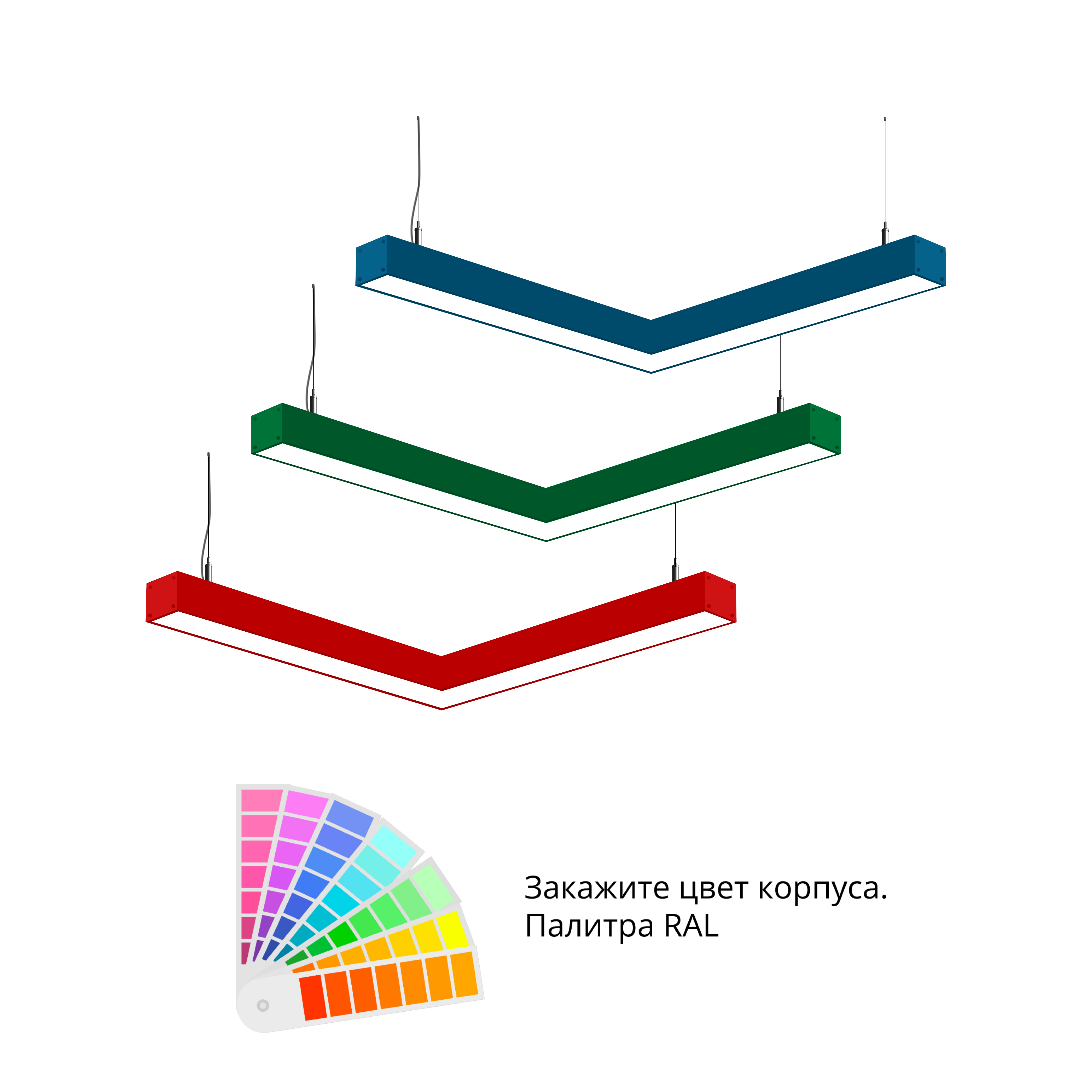 Светодиодный фигурный светильник MS-CORN L-образный 120гр. размер профиля 50х50mm длиной 750х750mm мощностью 60W. Светильник собирается в алюминиевом корпусе с матовым рассеивателем, который дает равномерную засветку по всей площади.