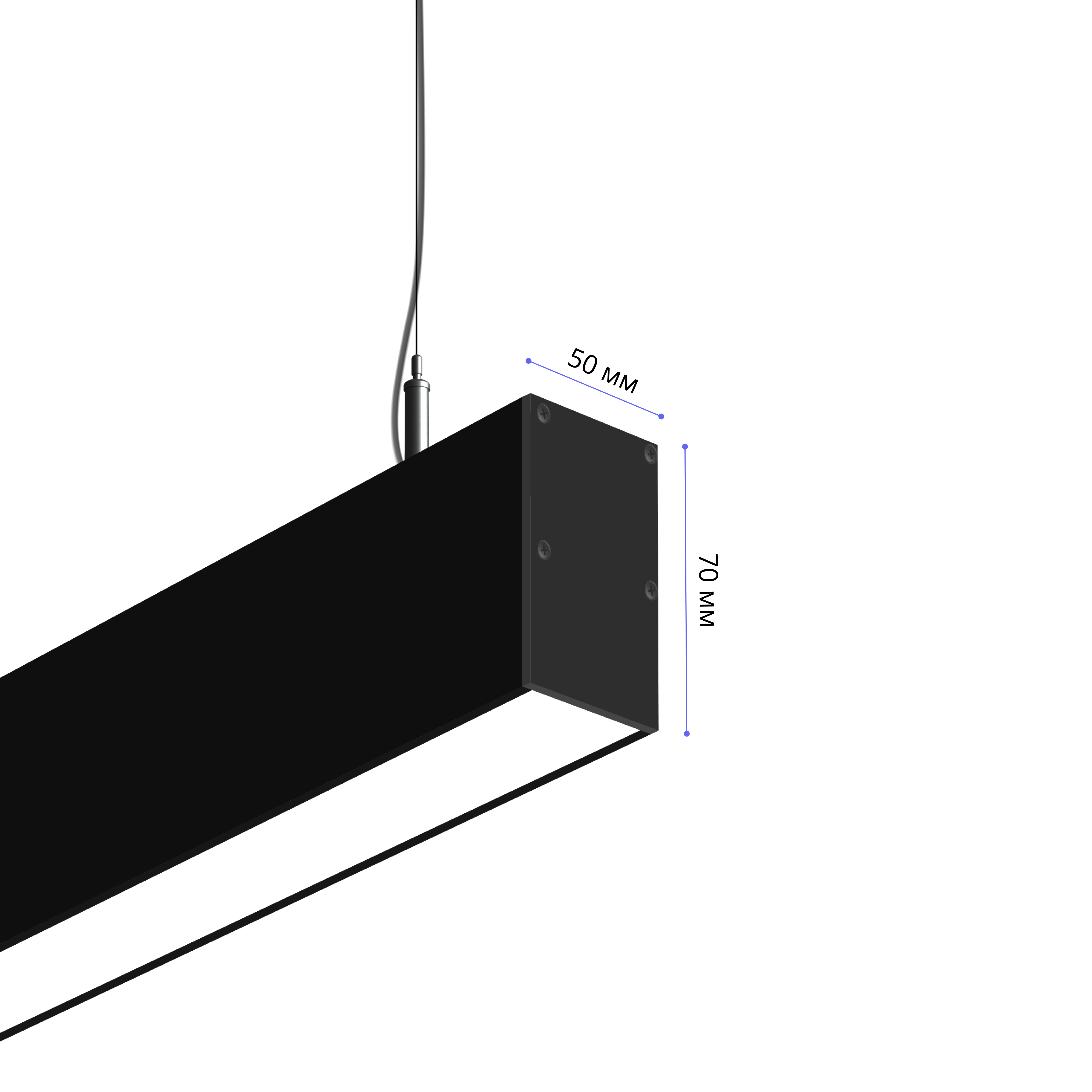 Подвесной светильник MS-LINEAR Линейный размер профиля 70х50мм длиной 2000мм мощностью 60W. Светильник собирается в алюминиевом корпусе с матовым рассеивателем, который дает равномерную засветку по всей площади.