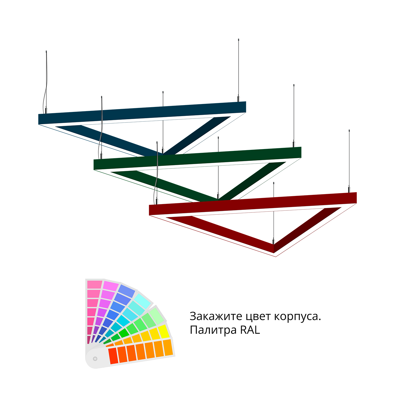 Cветодиодный фигурный светильник MS-TRIO-O Треугольник размер профиля 50x50мм длиной 3х750мм мощностью 80W. Светильник собирается из алюминиевого основния с матовым рассеивателем, который дает равномерную засветку по всей площади.
