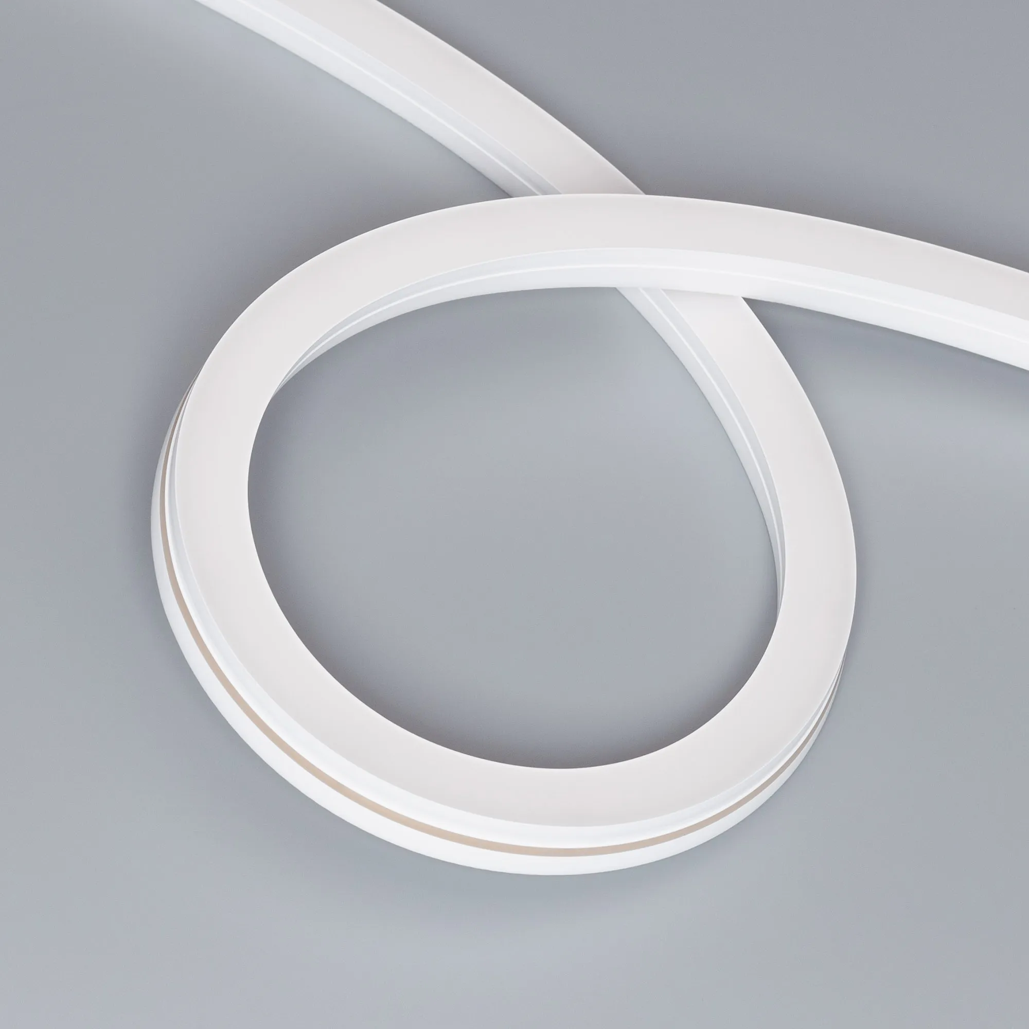 Гибкая герметичная лента (неон серии MOONLIGHT), сечение 16×16 мм. Светодиоды CSP 280 шт/м. Цвет свечения ТЕПЛЫЙ (3000К), индекс цветопередачи CRI>90, световой поток 435 лм/м, угол излучения 114°. Мощность 10 Вт/м, питание 24 В. Класс пылевлагозащиты IP67. Размеры 15000×16×16 мм. Мин. отрезок 50 мм. Горизонтальный изгиб SIDE, минимальный радиус изгиба 120 мм. Катушка 15 м. Цена за 1 м. Гарантия 5 лет.