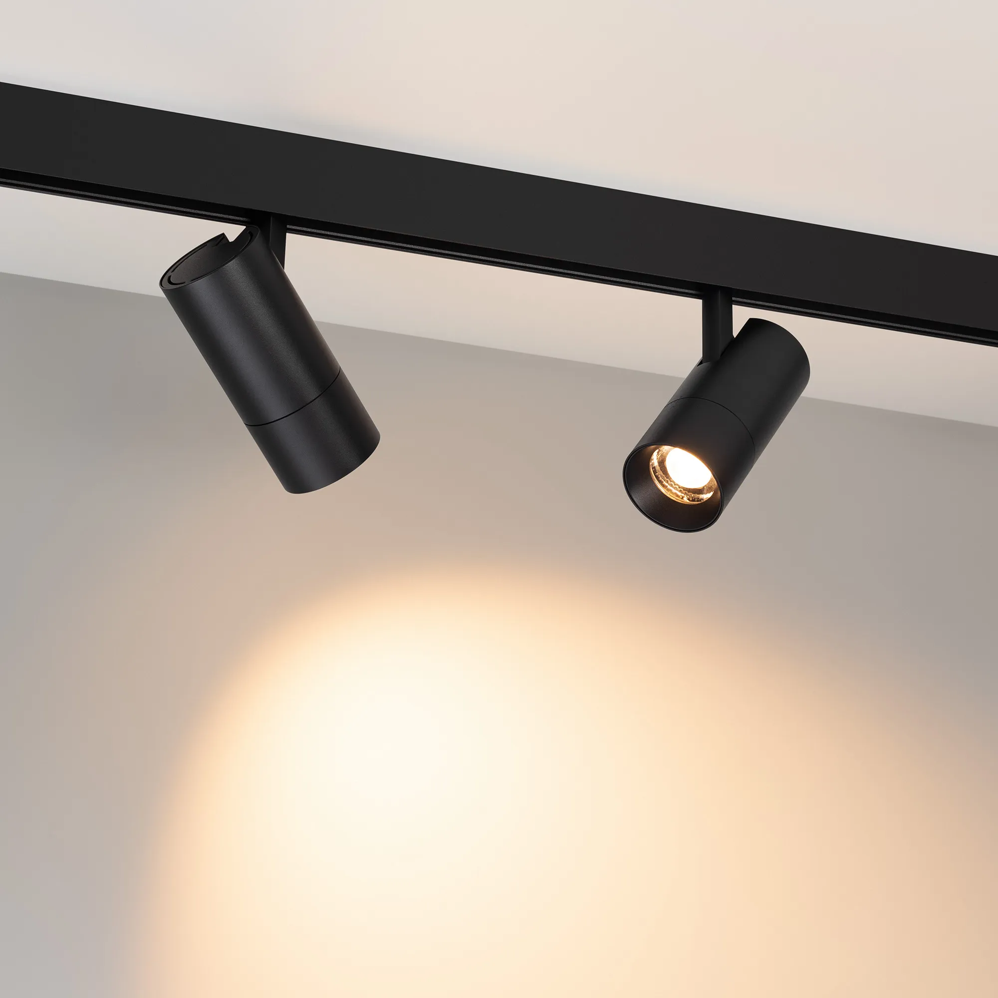 Светильник для магнитных треков MAG-ORIENT шириной 26 мм, с управлением по DALI. Мощность 15 Вт, св. поток 1100 лм, 73 лм/Вт, теплый 3000 K, CRI>94, угол 34-60°, напряжение питания 48 В. Черный фигурный корпус из металл, экран поликарбонат, степень защиты IP20. Размеры LxWxH 204x66x211 мм.