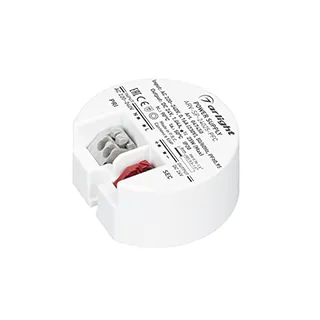 Источник напряжения с гальванической развязкой для светодиодных изделий. Входное напряжение 220-240 VAC. Выходные параметры: 24 В, 1.04 А, 25 Вт. Встроенный PFC >0.95. Негерметичный пластиковый корпус IP 20. Габаритные размеры диаметр в окружности Ø55 мм., высота 25 мм. Гарантийный срок 5 лет.