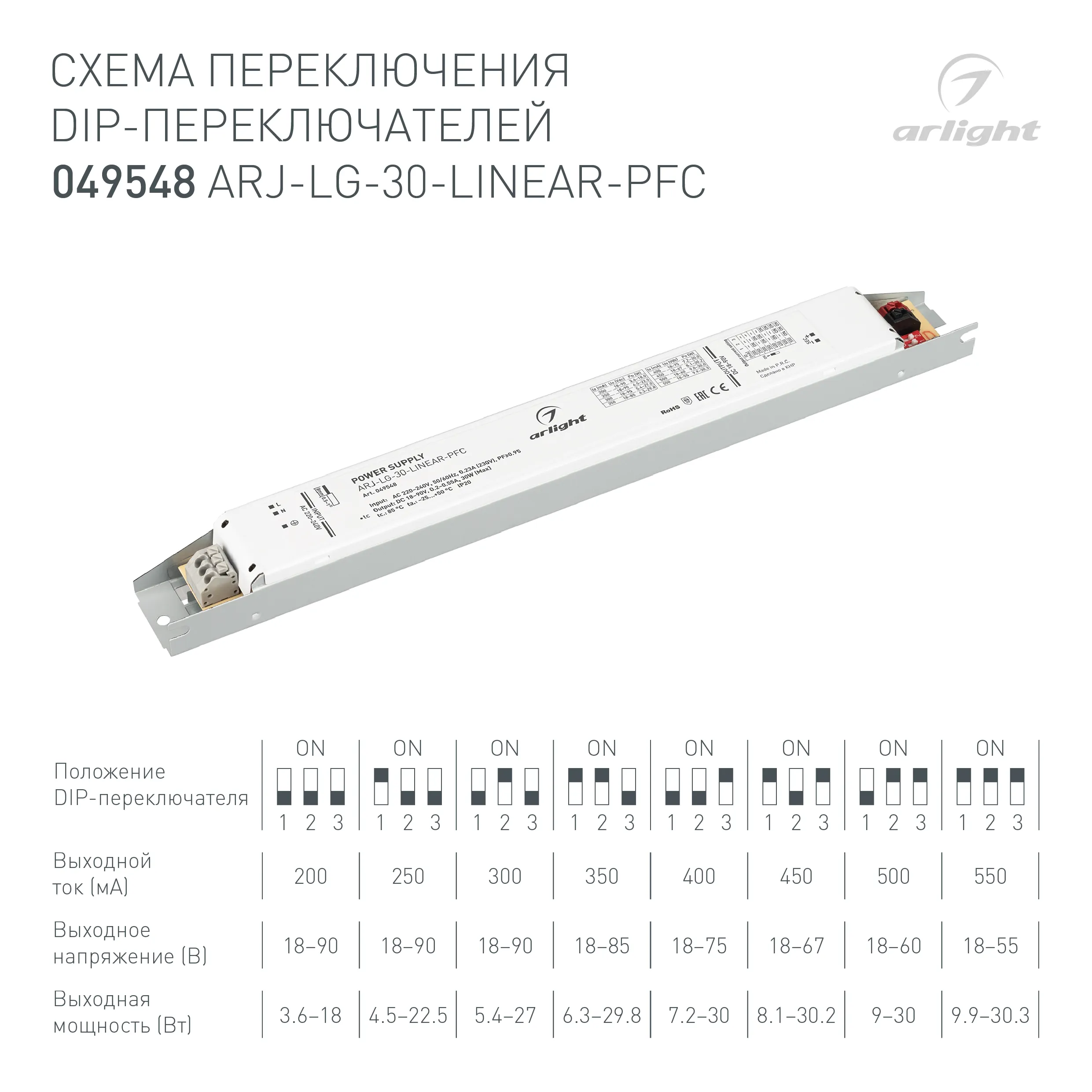 Блок питания ARJ-LG-30-LINEAR-PFC (30W, 18-90V, 0.2-0.55A) (Arlight, IP20 Металл, 5 лет)
