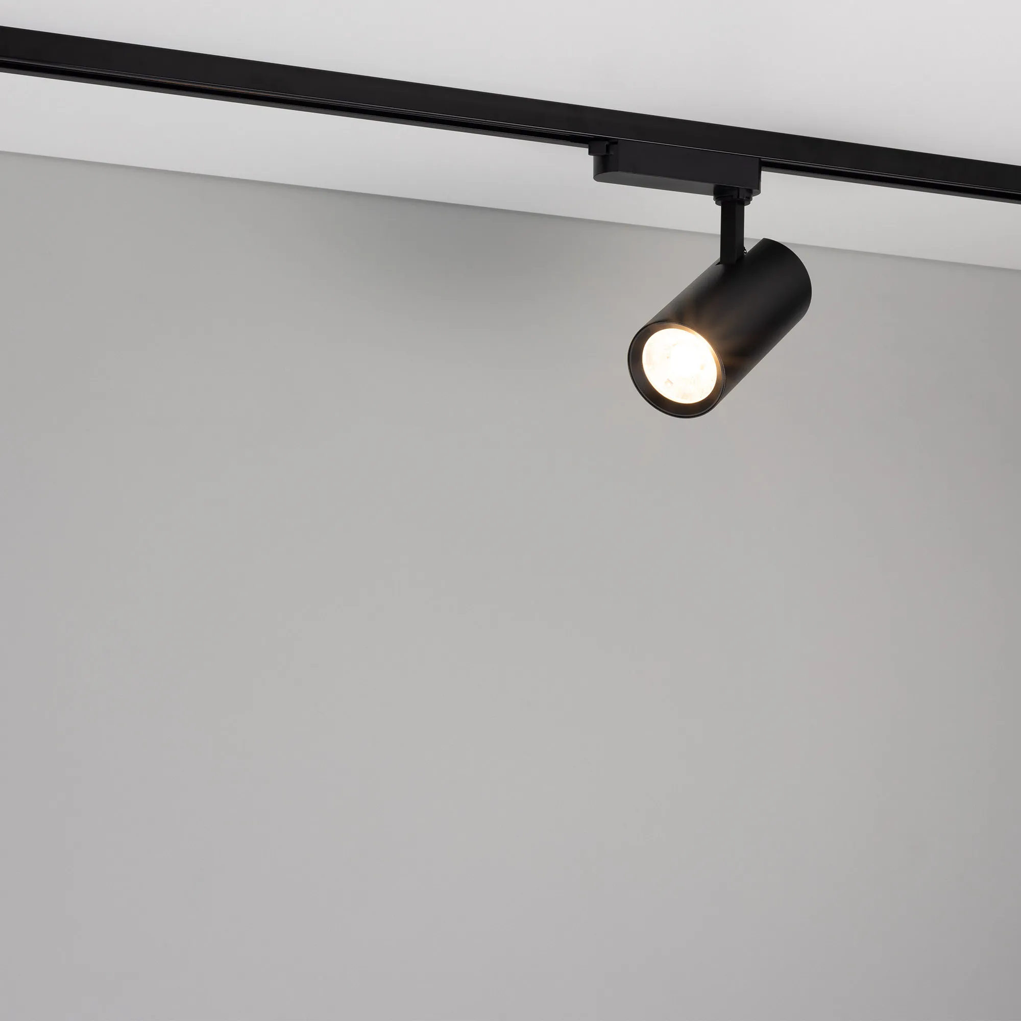 Светильник для треков/шин 2 провода. Мощность 20 Вт, св. поток без решетки honeycomb 2000 лм, 100 лм/Вт, с решеткой honeycomb 1320 лм, 66 лм/Вт, дневной 4000 K, CRI>90, угол 24°, напряжение питания 230 В. Черный круглый корпус из алюминия, материал линзы PMMA, степень защиты IP20. Размер: диаметр 74 мм, длина световой части 154 мм. Монтаж на трек 1-фазный. Драйвер встроенный 500 мА 25-40 В, пульсация <5%.