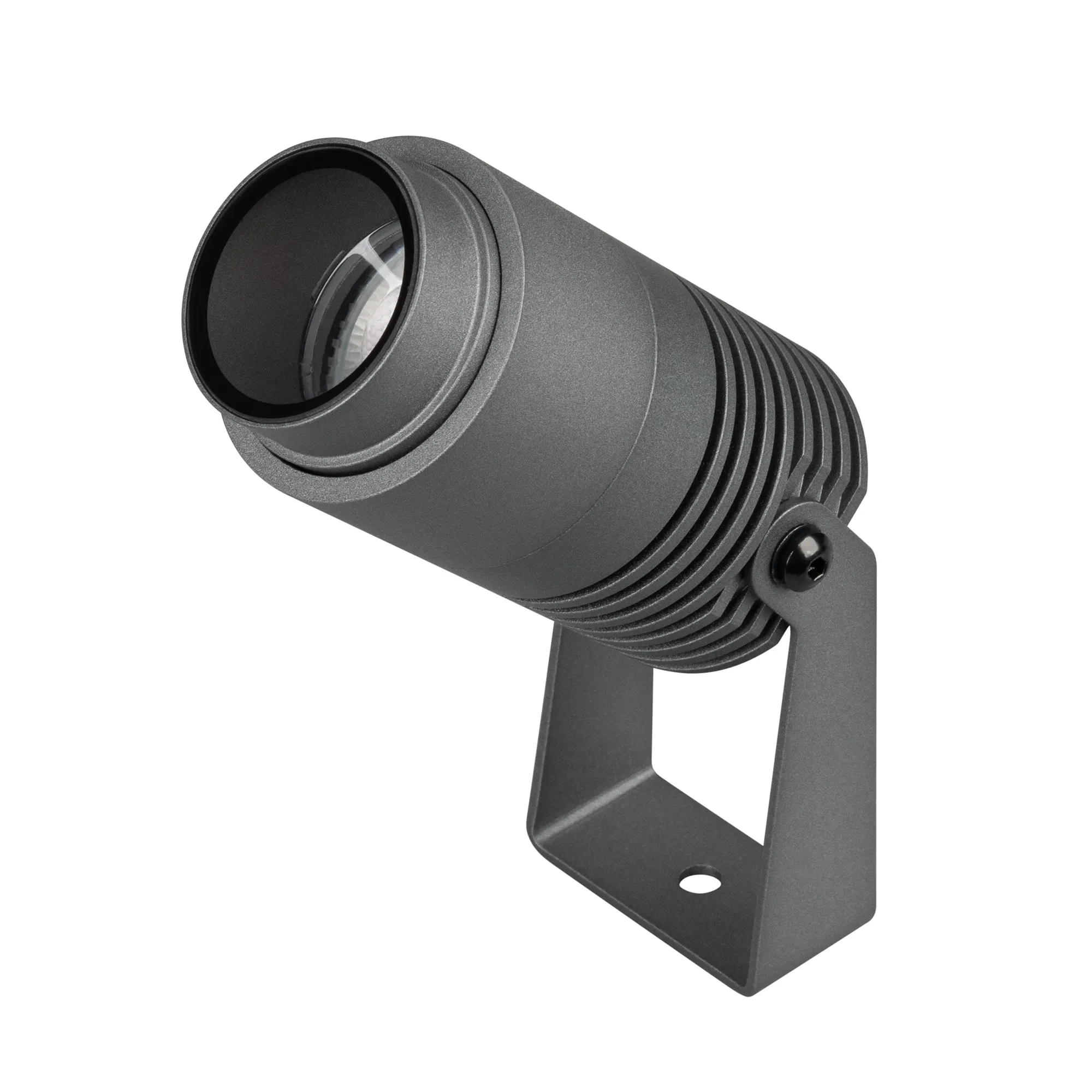 Уличный светодиодный прожектор, мощность 8Вт, регулируемый угол освещения 10-40°. Цвет ДНЕВНОЙ 4000К, световой поток для угла 10° 240 для угла 40° 420лм. Влагозащищенный корпус IP67 - темно-серый алюминий, экран из закаленного стекла. Угол поворота корпуса в вертикальной плоскости 135°. Питание 230В, мощность 8 Вт. Размеры DxH - Ø52x103мм. В комплекте 1м провод.