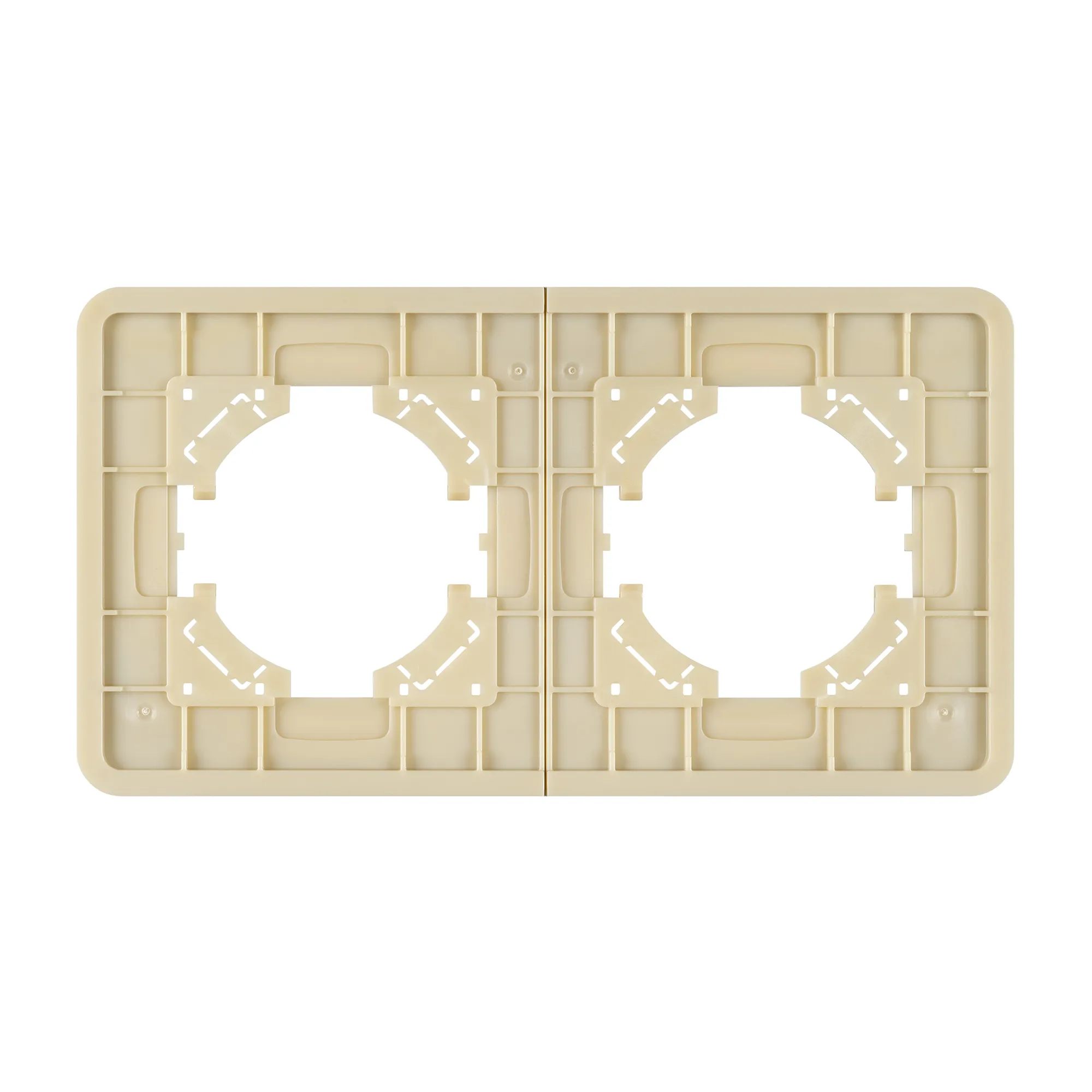 Рамка алюминиевая на 2 поста, под встраиваемый механизм. Цвет - золотой. Среднего уровня герметичности IP20. Ориентация монтажа - горизонтальная (основным ориентиром служат посадочные выступы для накладки механизма).