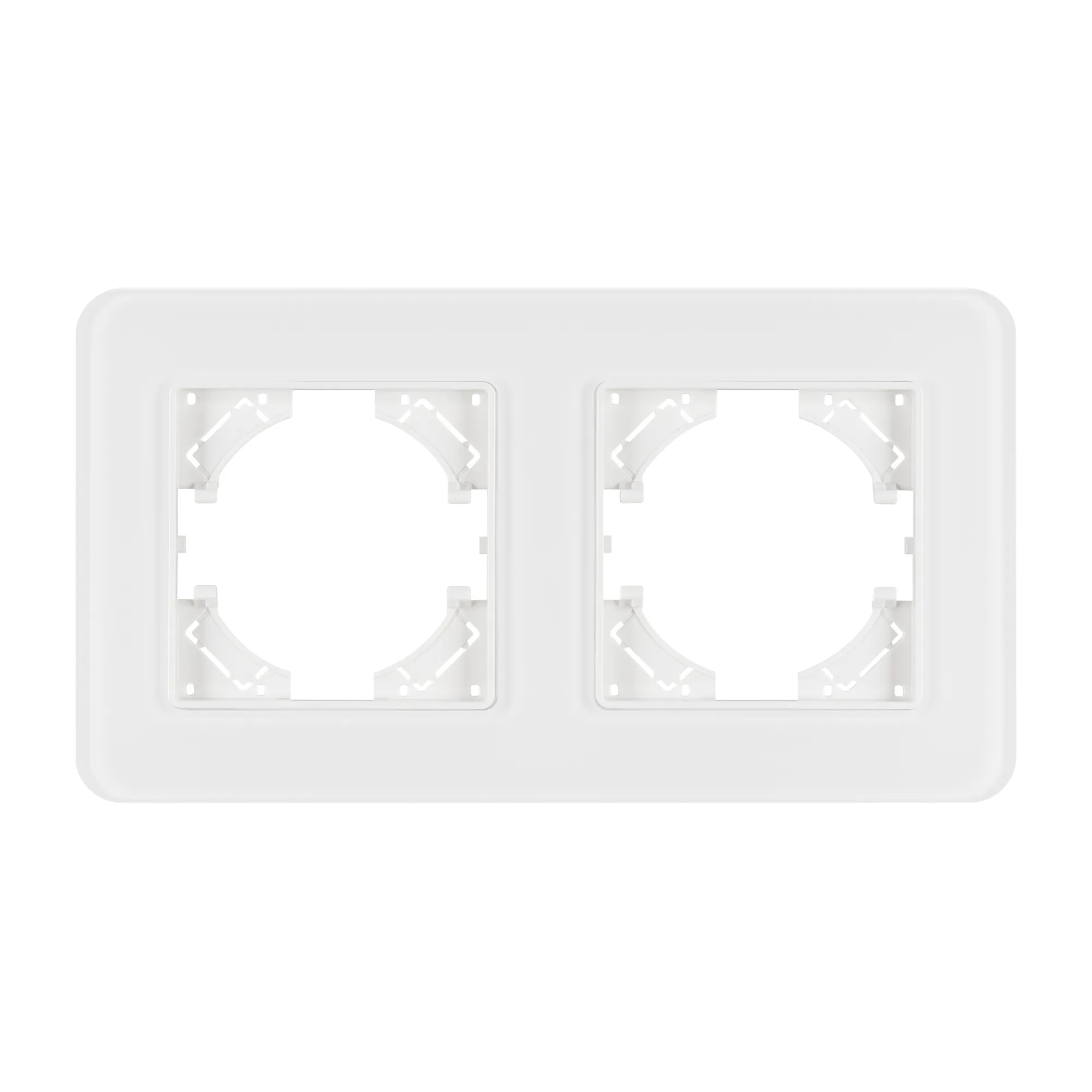 Рамка стеклянная на 2 поста, под встраиваемый механизм. Цвет - белый. Среднего уровня герметичности IP20. Ориентация монтажа - горизонтальная (основным ориентиром служат посадочные выступы для накладки механизма).