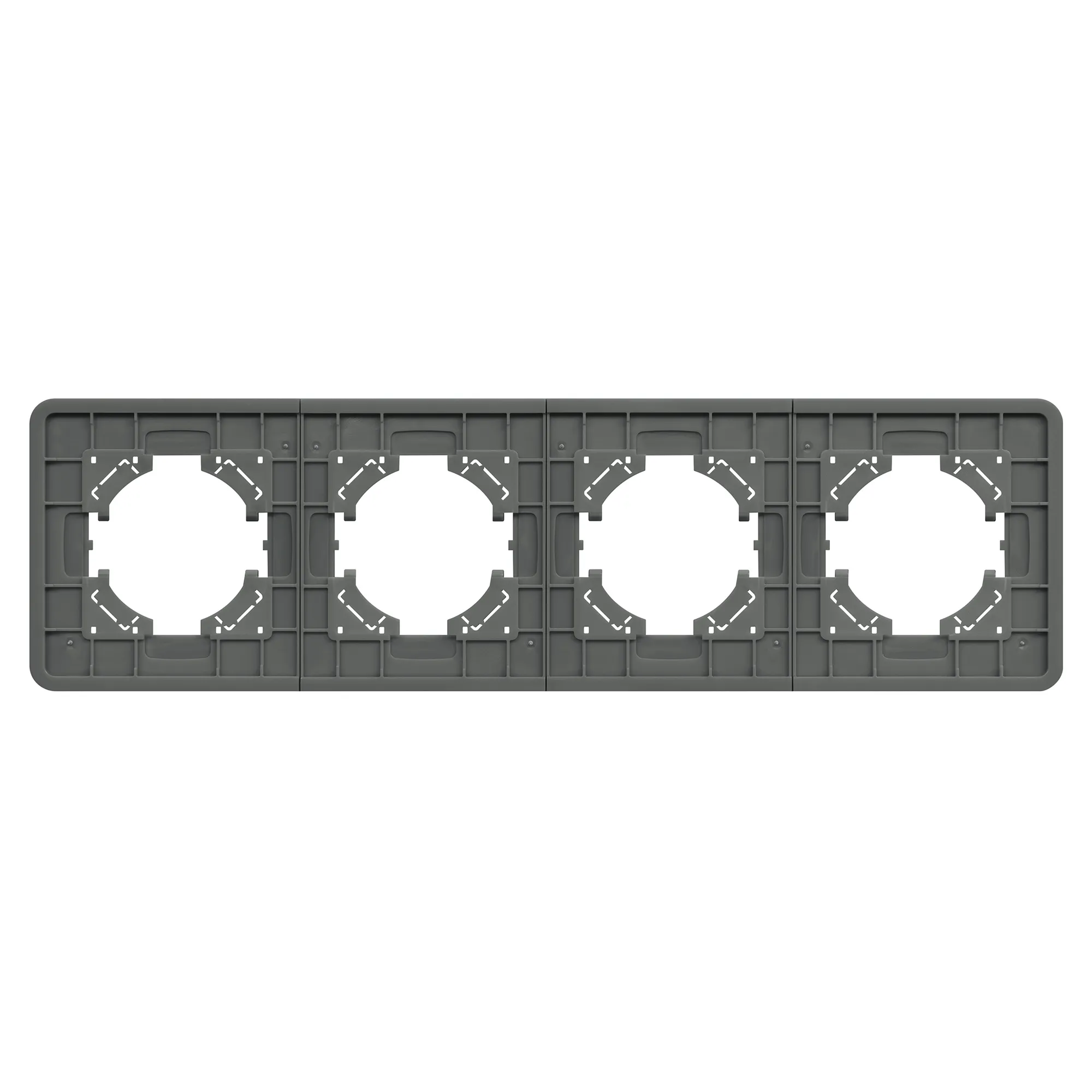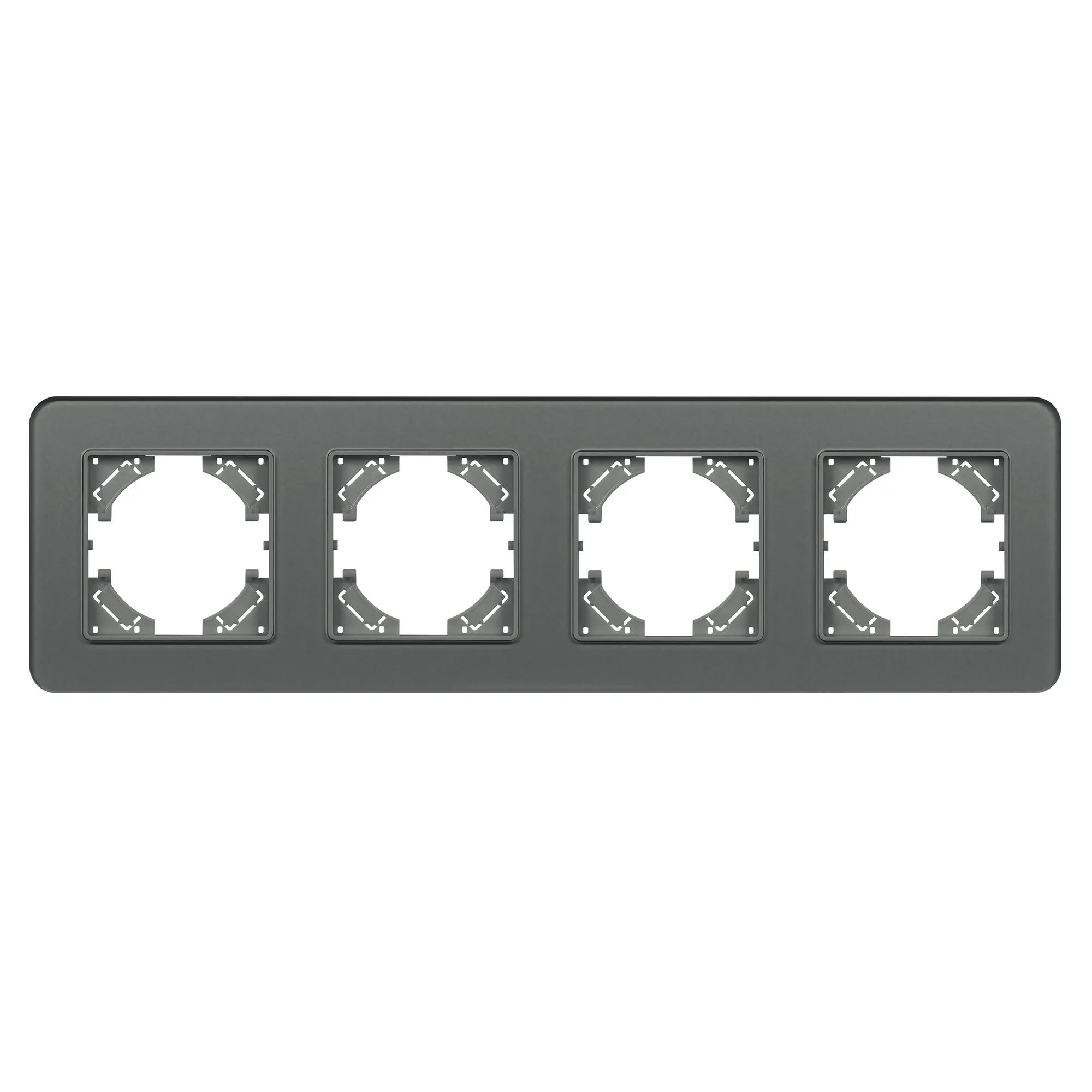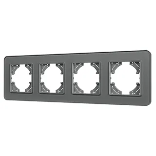 Рамка стеклянная на 4 поста, под встраиваемый механизм. Цвет - серый. Среднего уровня герметичности IP20. Ориентация монтажа - горизонтальная (основным ориентиром служат посадочные выступы для накладки механизма).