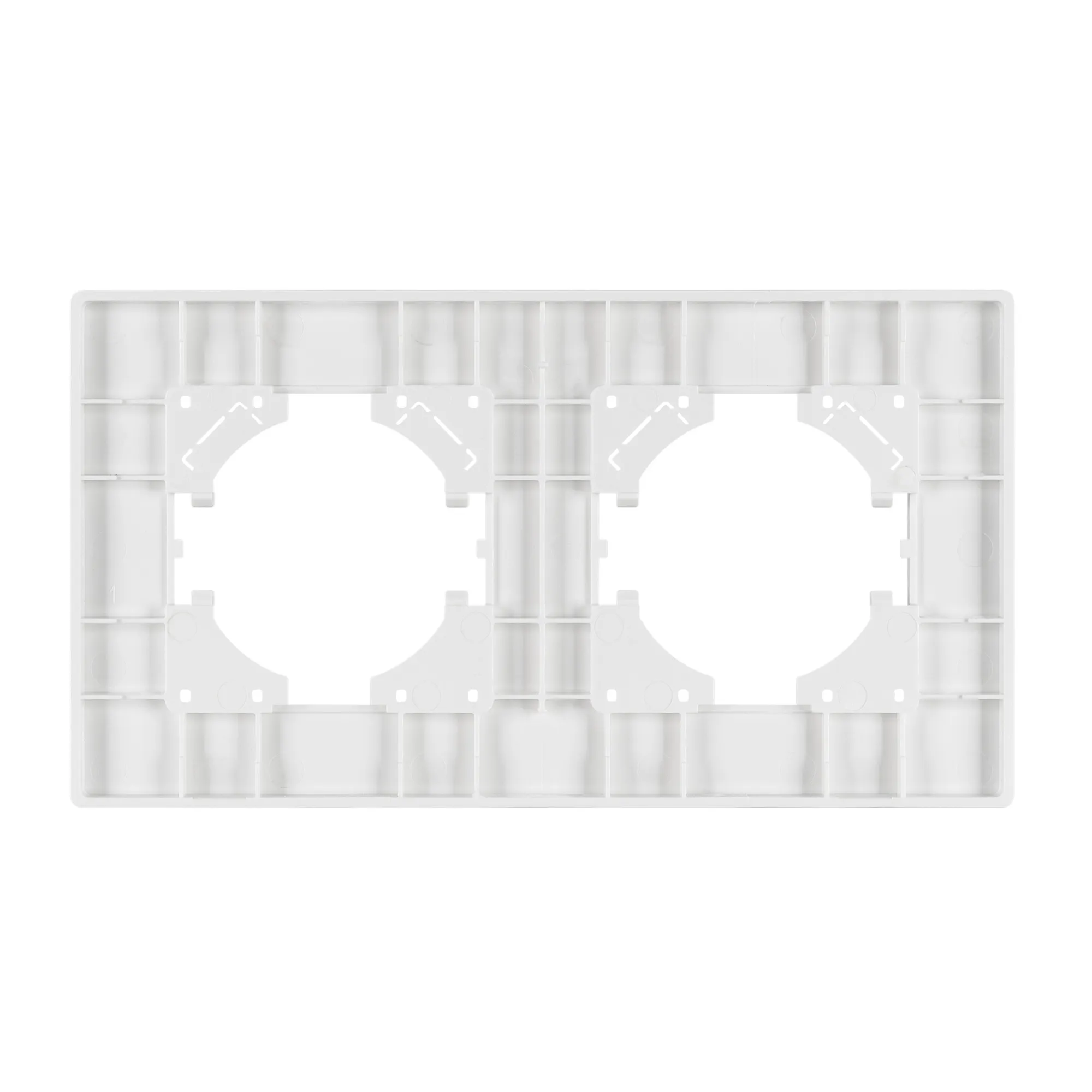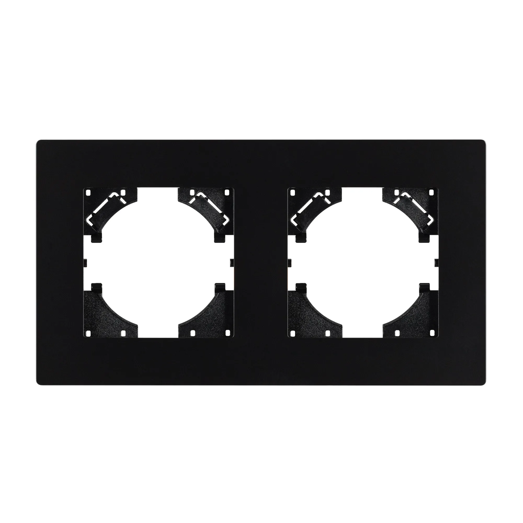 Рамка пластиковая на 2 поста, под встраиваемый механизм. Цвет - черный. Среднего уровня герметичности IP20. Ориентация монтажа - горизонтальная (основным ориентиром служат посадочные выступы для накладки механизма).