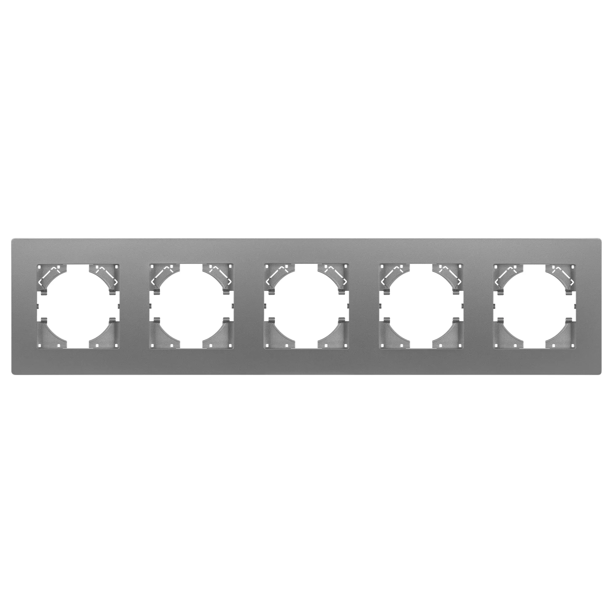 Рамка пластиковая на 5 постов, под встраиваемый механизм. Цвет - серый. Среднего уровня герметичности IP20. Ориентация монтажа - горизонтальная (основным ориентиром служат посадочные выступы для накладки механизма).