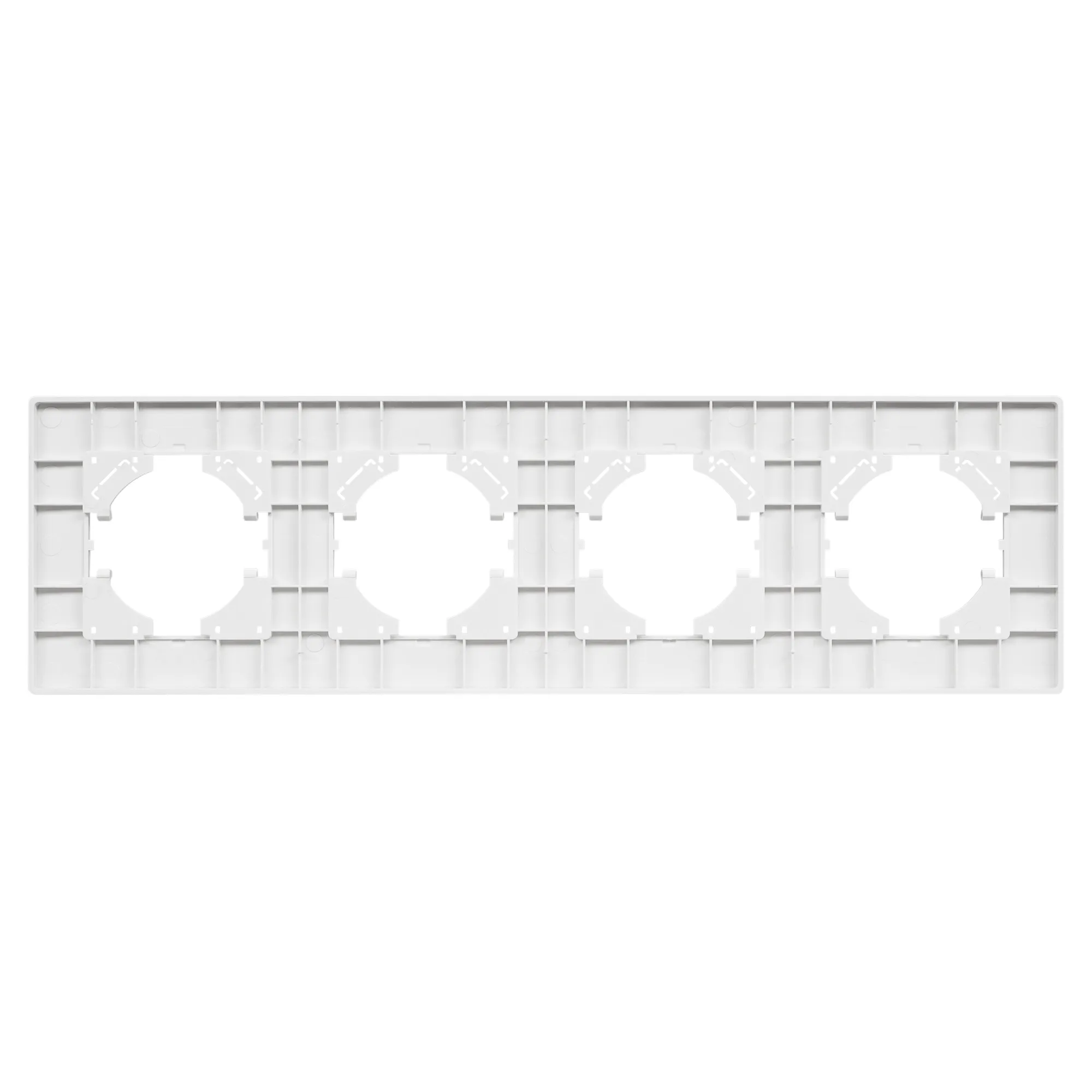 Рамка пластиковая на 4 поста, под встраиваемый механизм. Цвет - черный. Среднего уровня герметичности IP20. Ориентация монтажа - горизонтальная (основным ориентиром служат посадочные выступы для накладки механизма).