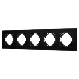 Рамка пластиковая на 5 постов, под встраиваемый механизм. Цвет - черный. Среднего уровня герметичности IP20. Ориентация монтажа - горизонтальная (основным ориентиром служат посадочные выступы для накладки механизма).