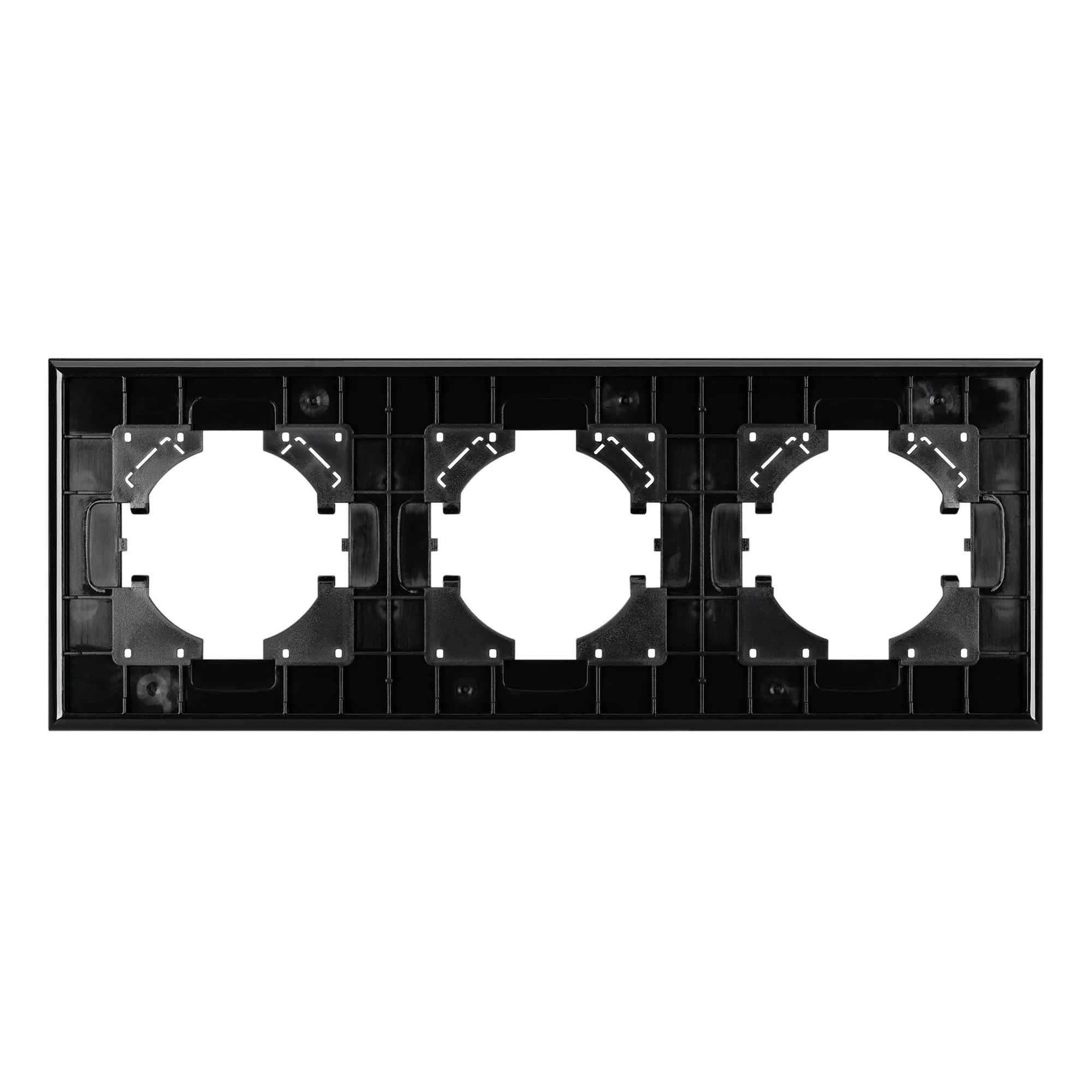 Рамка пластиковая на 3 поста, под встраиваемый механизм, с накладкой из натурального дерева. Цвет накладки - натуральное дерево* (осветленный), цвет рамки - черный. Среднего уровня герметичности IP20. Ориентация монтажа - горизонтальная (основным ориентиром служат посадочные выступы для накладки механизма).