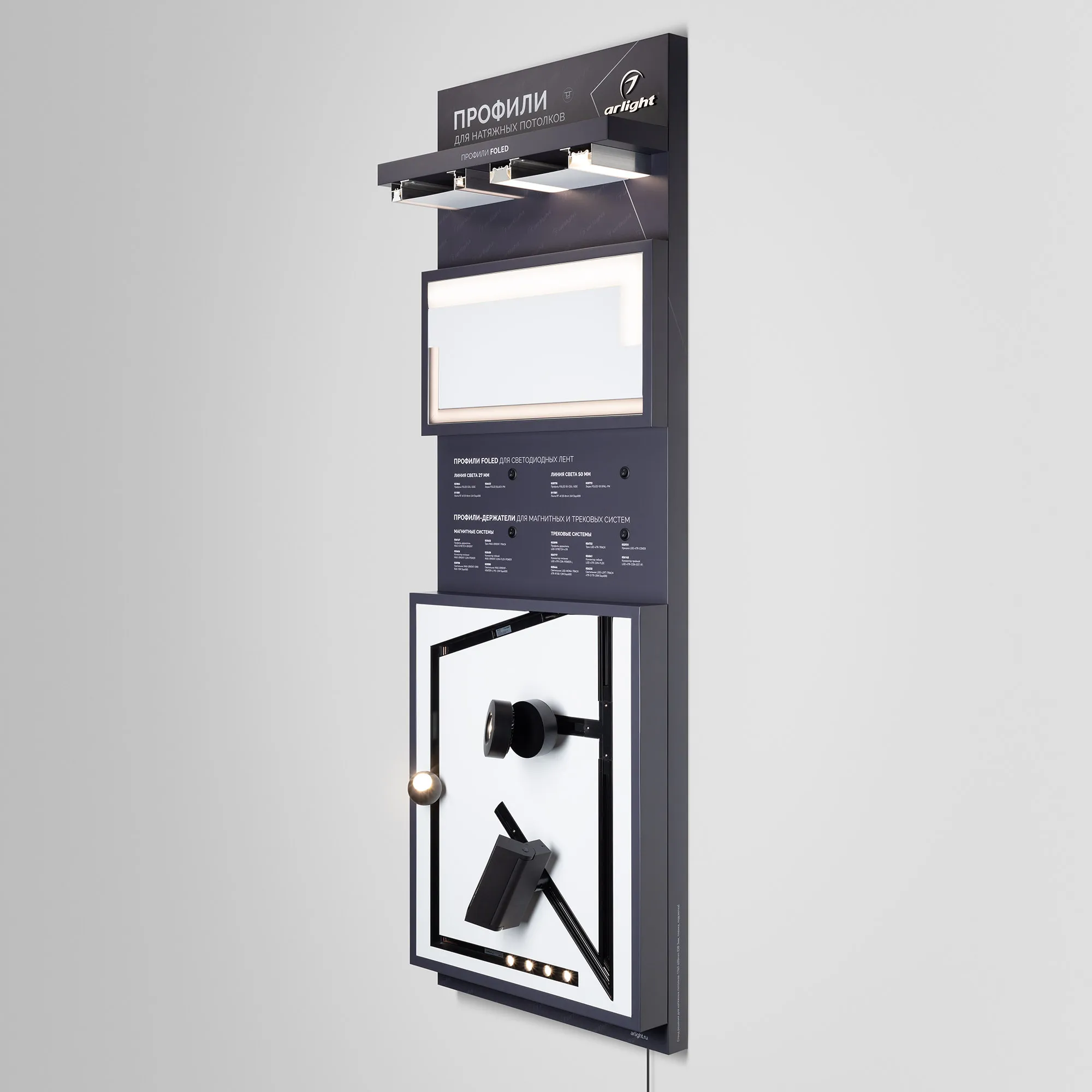 В магазине Мельковский Свет Вы можете купить "Стенд Решения для натяжных потолков ARLIGHT-02-1760x600mm (DB 3мм, пленка) (Arlight, -)"