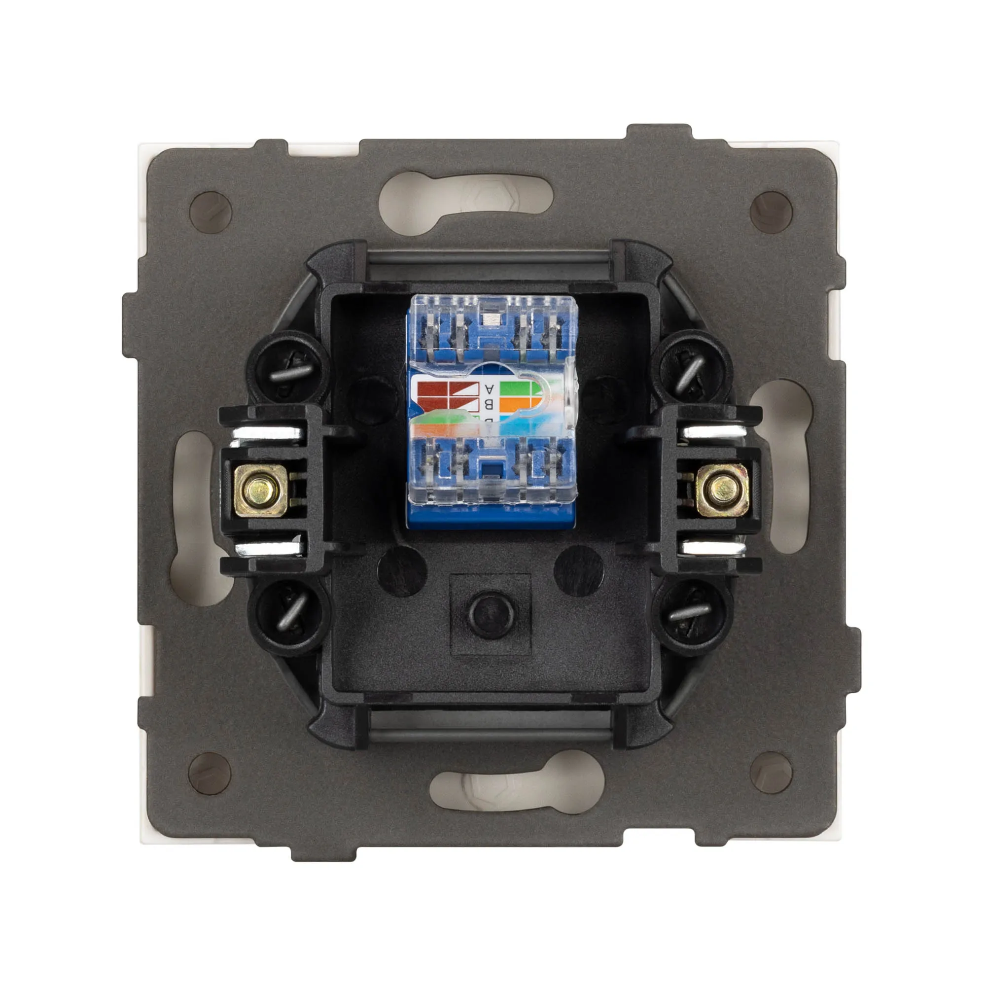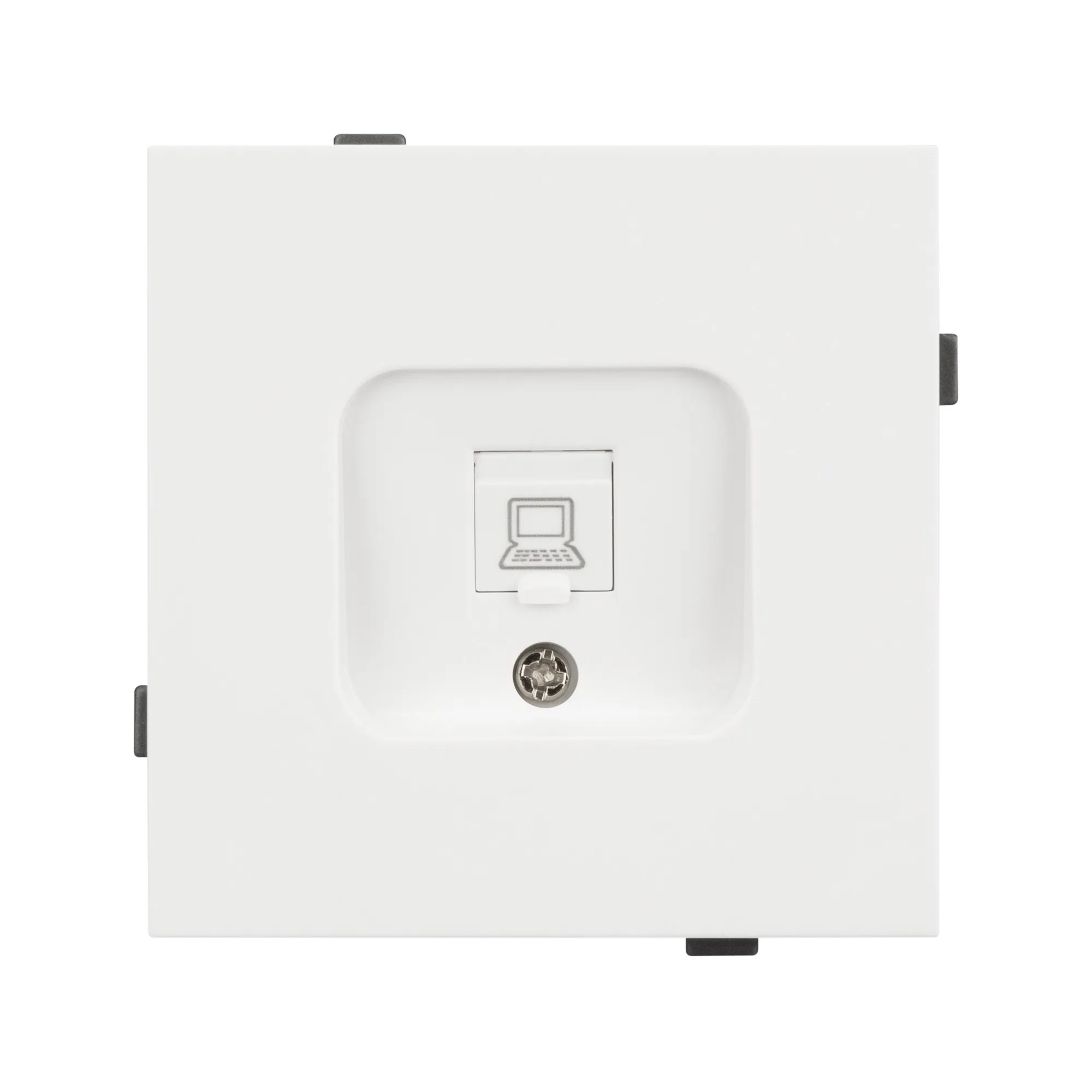 Механизм компьютерной розетки на 1 пост 6-й категории. Цвет - белый, с Soft-Touch покрытием. Без фронтальной рамки. Уровень пылевлагозащиты IP20. Розетка устанавливается в стандартный подрозетник круглого сечения диаметром 60мм.