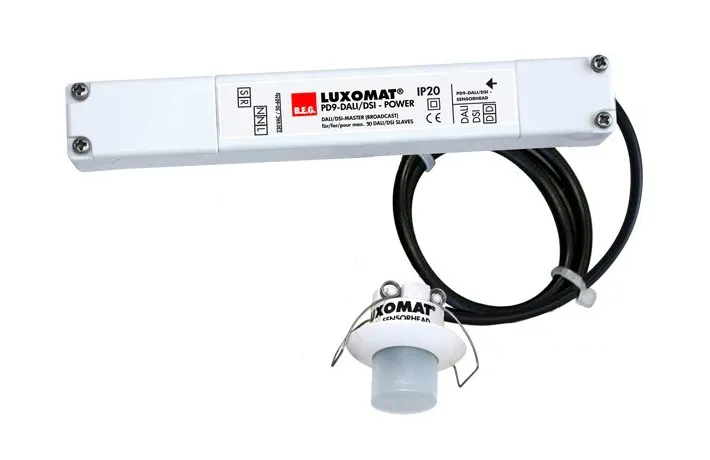 • Дистанционно управляемый потолочный групповой мини-датчик присутствия PD9-M-DALI/DSI-GH в исполнении ведущего (Master) устройства, для потолочного монтажа, с интерфейсом DALI и круговым диапазоном обнаружения