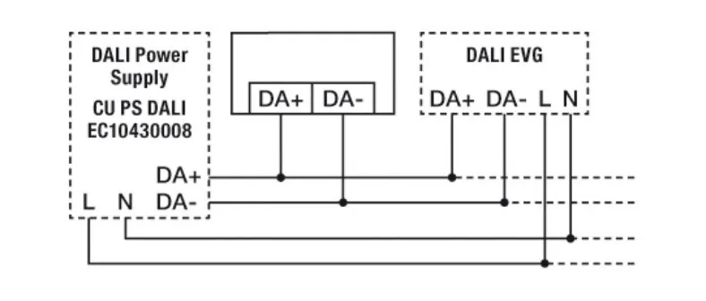 - Вход для подключения стандартных 230-вольтовых выключателей (команды выключателя подаются в виде команд DALI-2 согласно МЭК 62386-301)