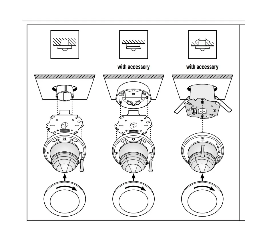 - Накладной монтаж и встроенный потолочный монтаж при использовании аксессуаров