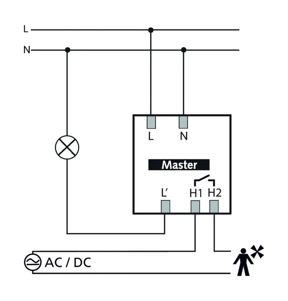 - 1 канал освещения (реле, 230 В) и 1 канал присутствия (реле, плавающее для управления HVAC)