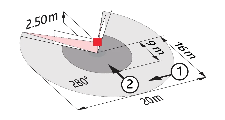 Зона обнаружения: горизонтальный 280° (настенный монтаж)