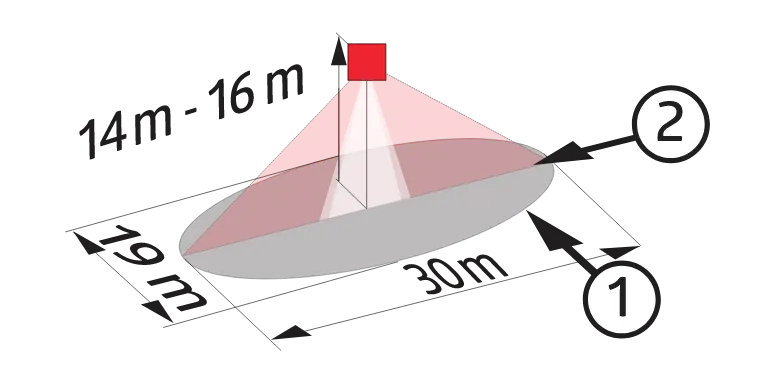 Контролируемая зона (тангенциальное движение): 440 м² / высота монтажа 14 м