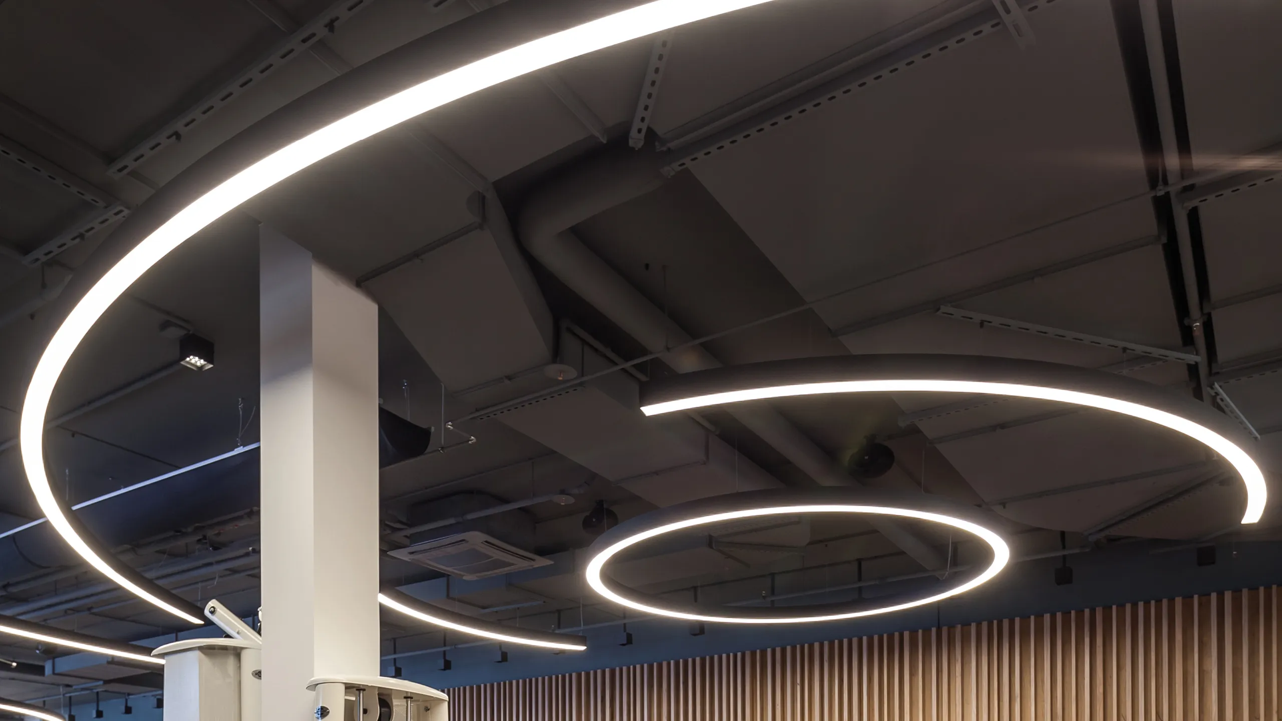 Возможны опции диммирования, степень защиты IP40 или IP54, блок аварийного питания (БАП 1-3 часа), изменение цветовой температуры с теплого на холодный. Подвесной или накладной монтаж. Светильник создает уникальные световые пространства и отлично подходит для дизайнерского освещения квартир, торгово-развлекательных центров, офисов, детских клубов, ресторанов, кафе, автосалонов, фитнес залов. Базовые цвета корпуса: Белый / Черный. Так же возможен выбор любого цвета по RAL / ORACAL.